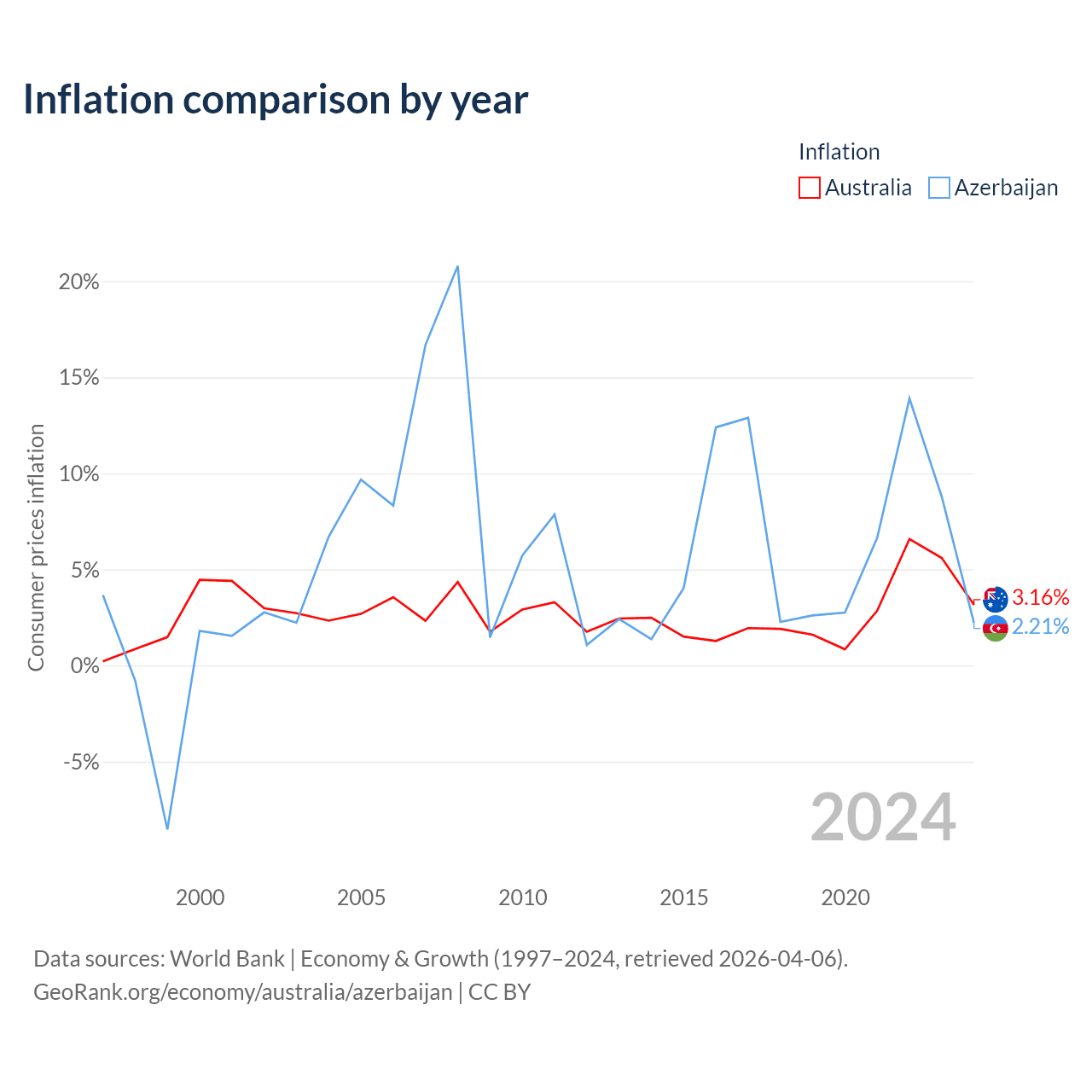 Data sources: World Bank | Economy & Growth (1960–2024, retrieved 2026-04-06).