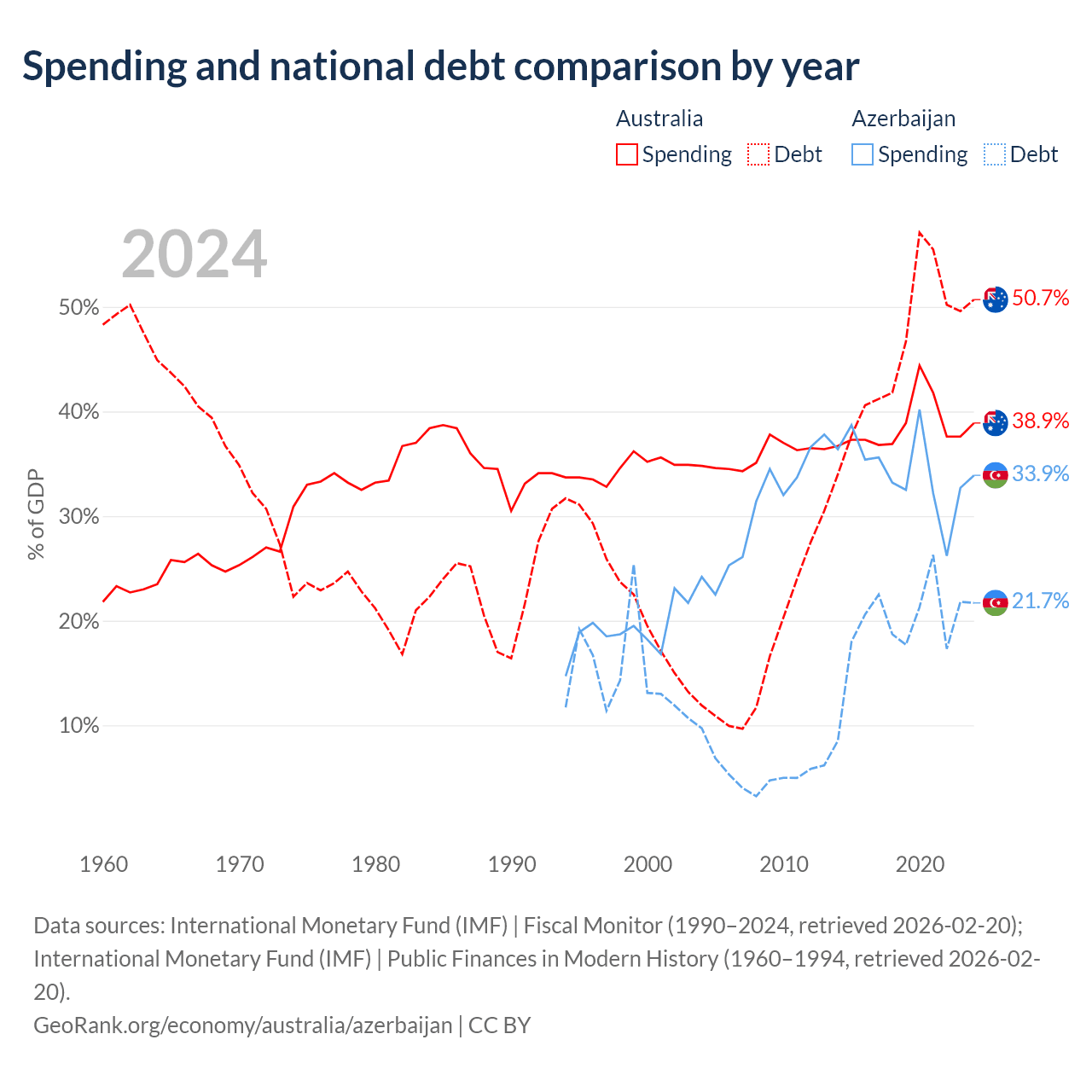 Australia has $891B in government debt (50.7% of GDP), compared to $16.1B (21.7% of GDP) in Azerbaijan.