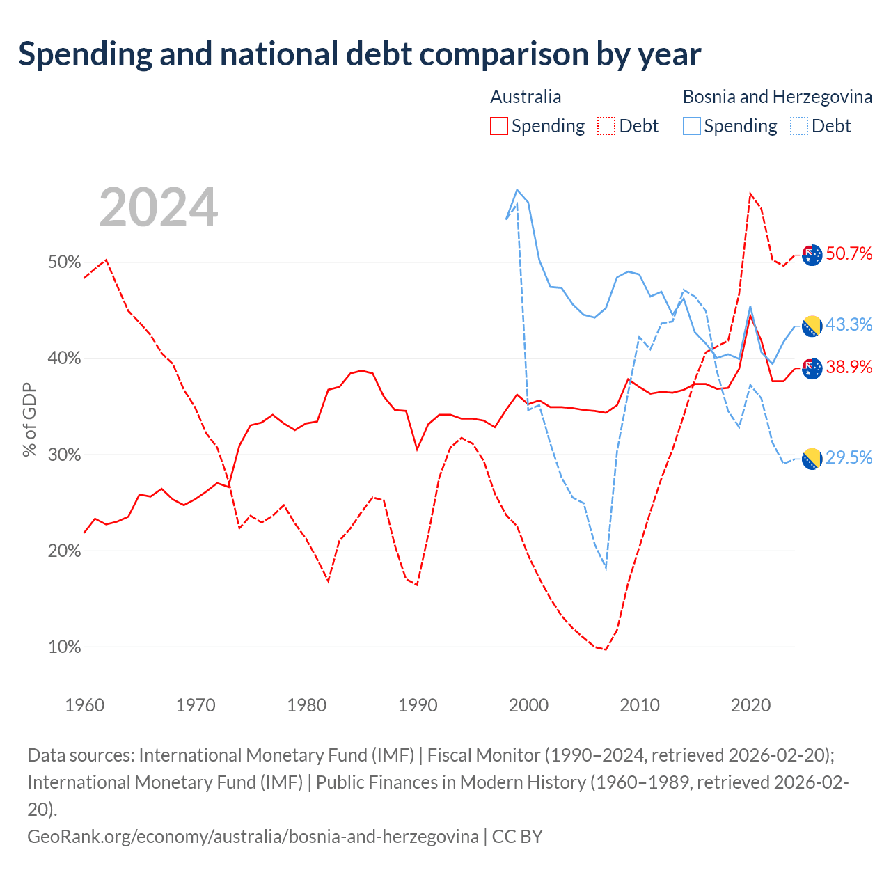 - International Monetary Fund (IMF) | Fiscal Monitor (1990–2024, retrieved 2026-02-20)