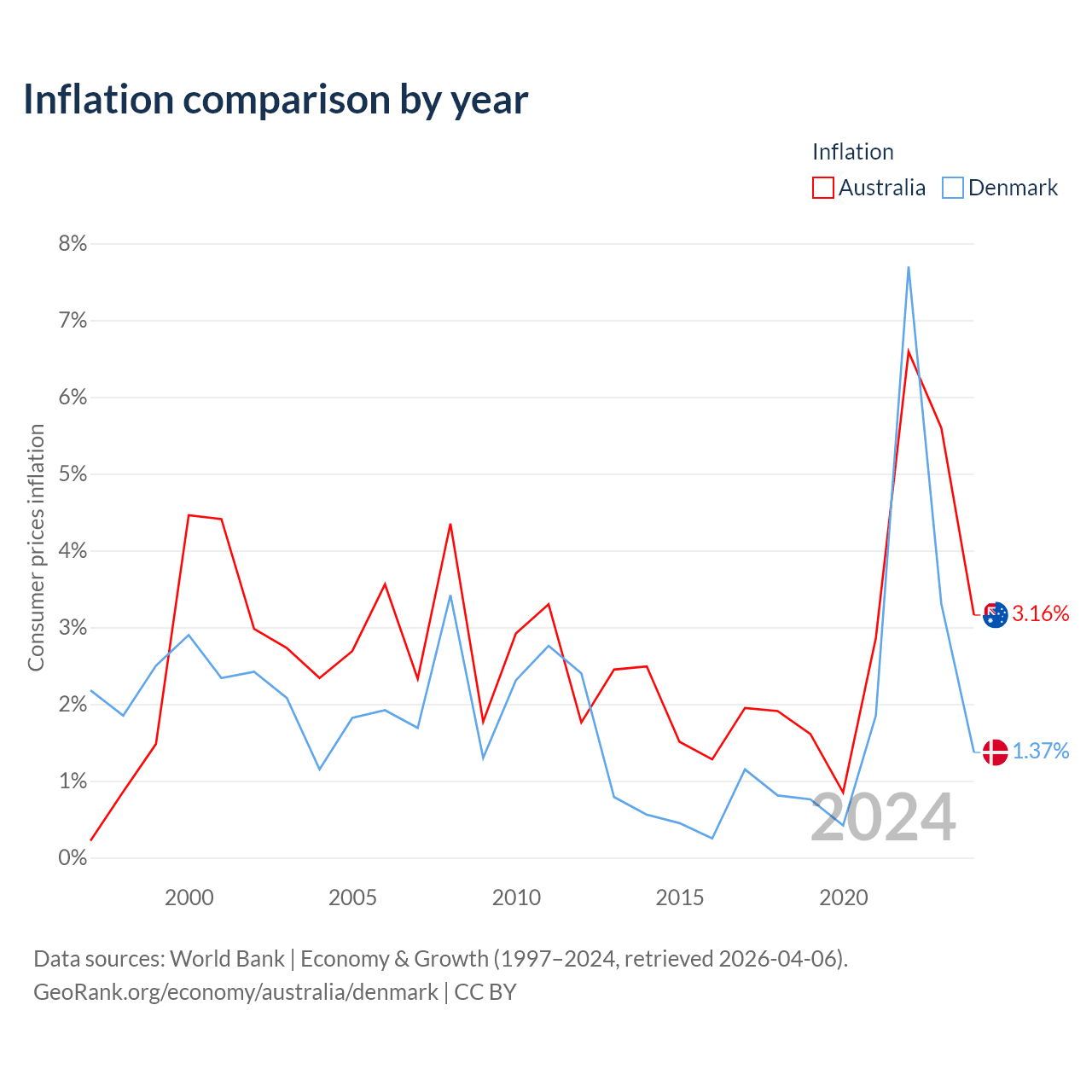 Data sources: World Bank | Economy & Growth (1960–2024, retrieved 2026-04-06).