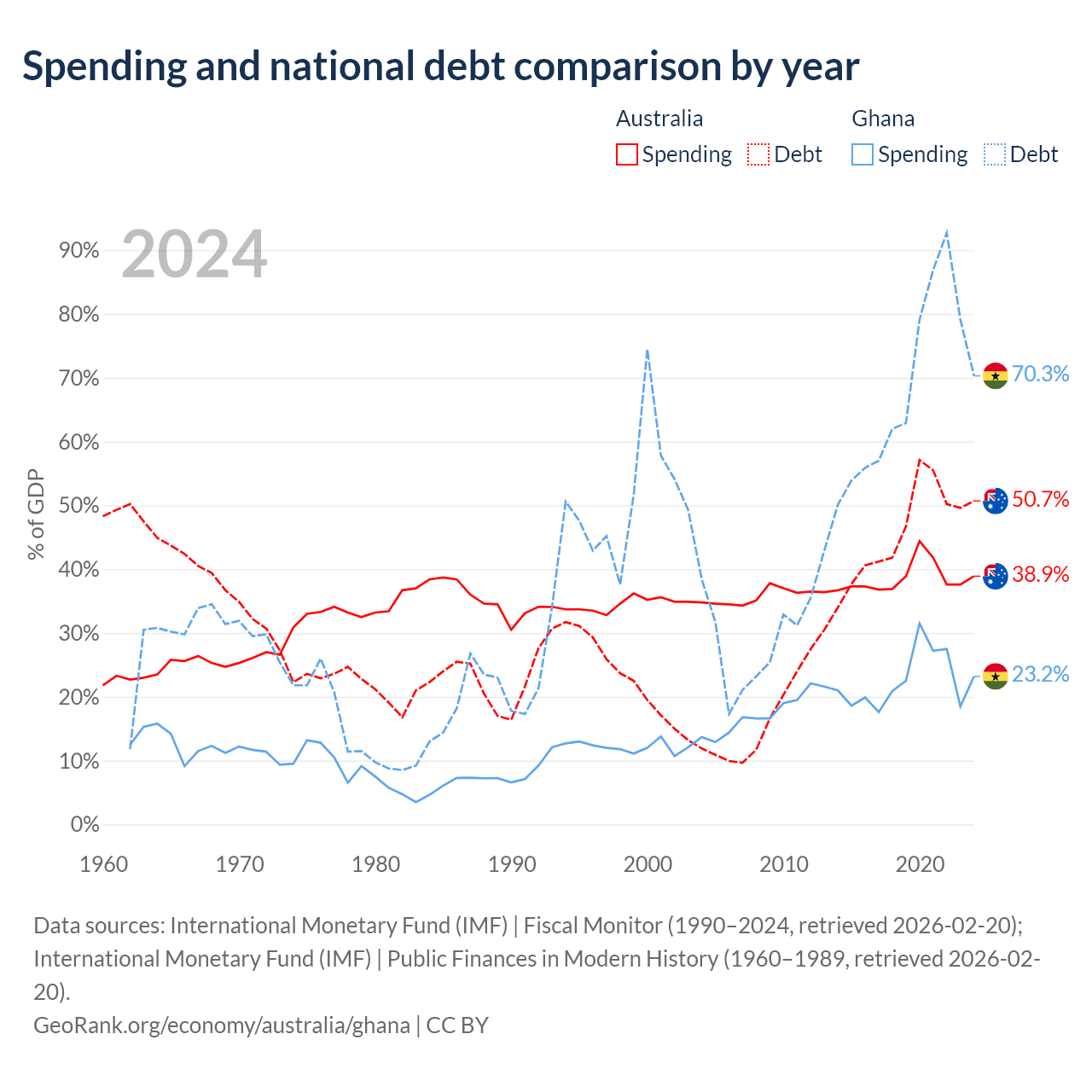 Australia has $891B in government debt (50.7% of GDP), compared to $57.9B (70.3% of GDP) in Ghana.