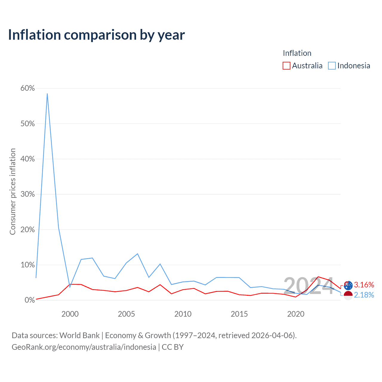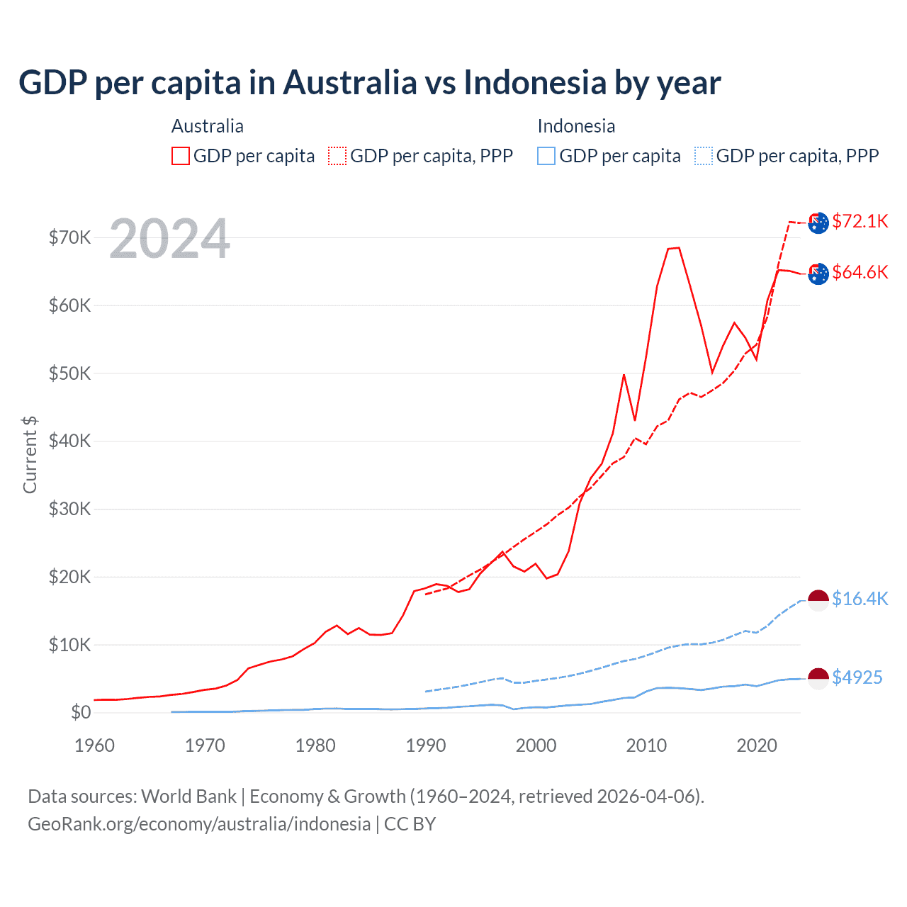 Australia vs Indonesia GDP by year