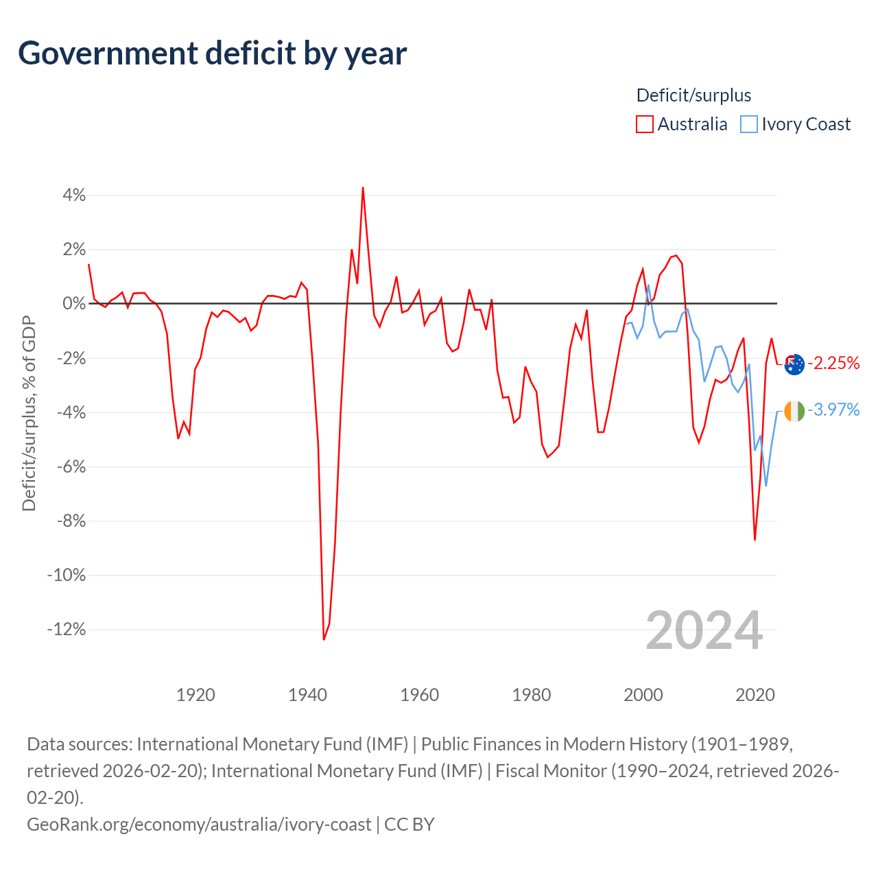 - International Monetary Fund (IMF) | Public Finances in Modern History (1901–1989, retrieved 2026-02-20)