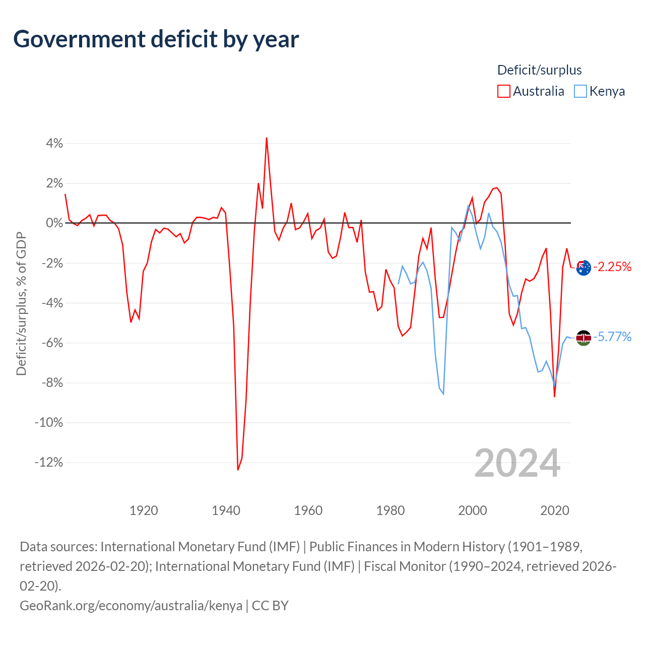 - International Monetary Fund (IMF) | Public Finances in Modern History (1901–1997, retrieved 2026-02-20)