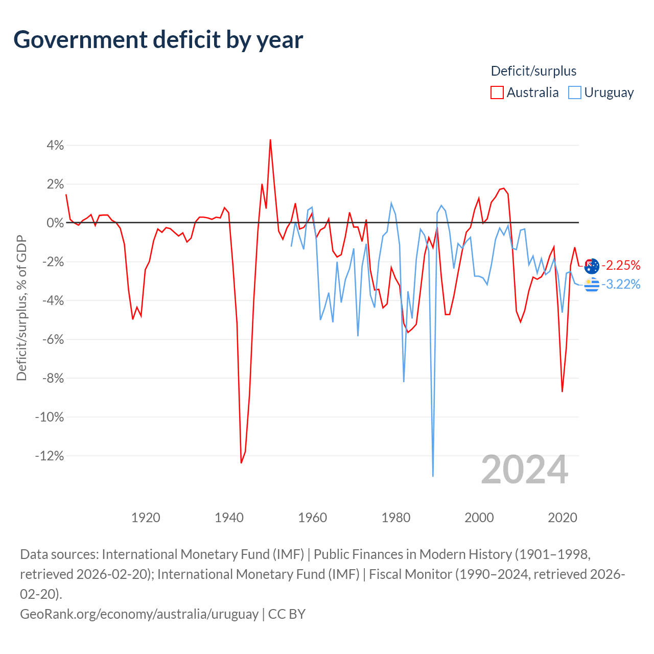 - International Monetary Fund (IMF) | Public Finances in Modern History (1901–1998, retrieved 2026-02-20)