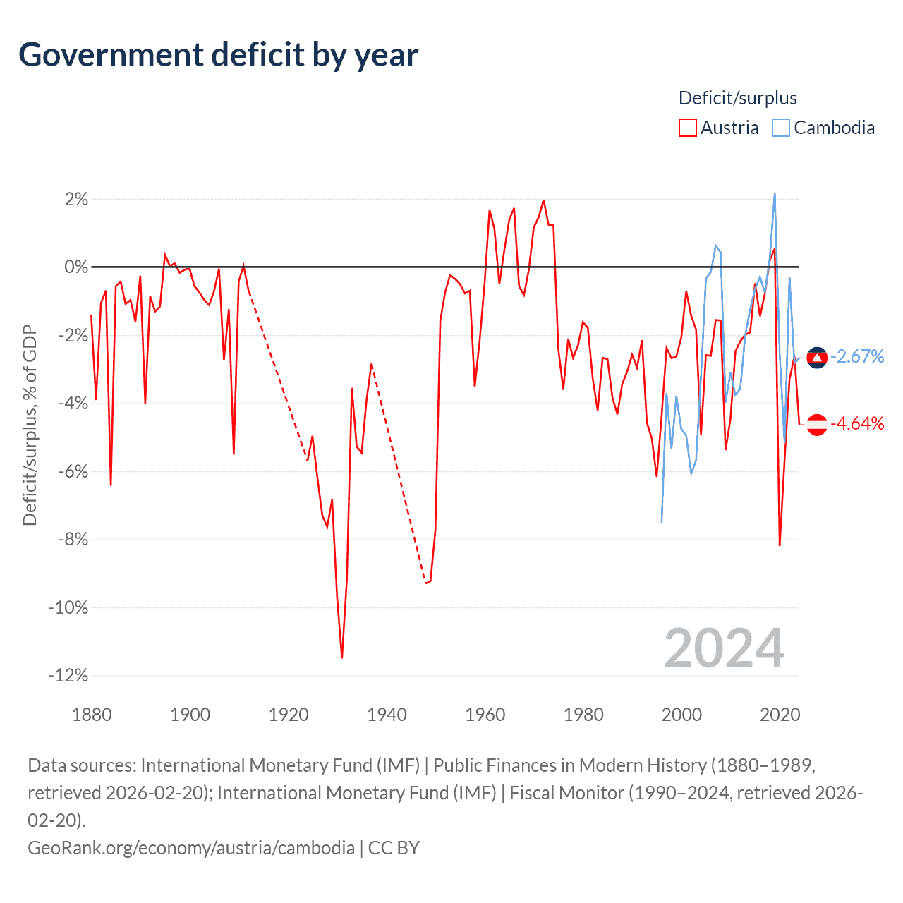 - International Monetary Fund (IMF) | Public Finances in Modern History (1880–1989, retrieved 2026-02-20)
