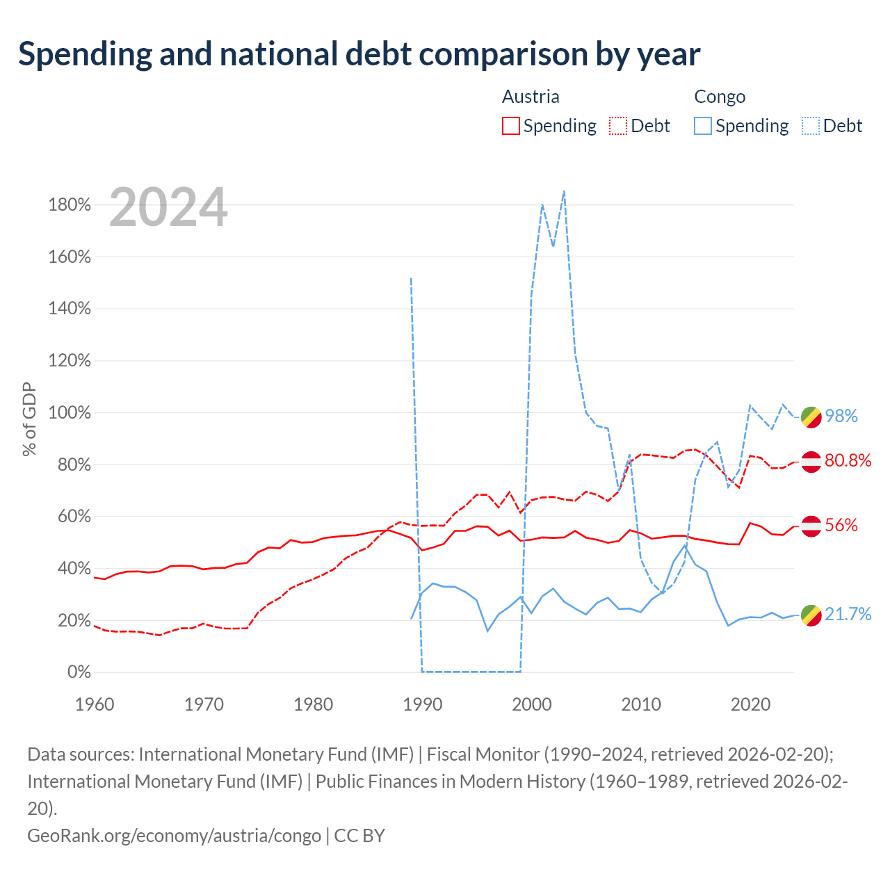 Austria has $432B in government debt (80.8% of GDP), compared to $15.4B (98% of GDP) in the Congo.