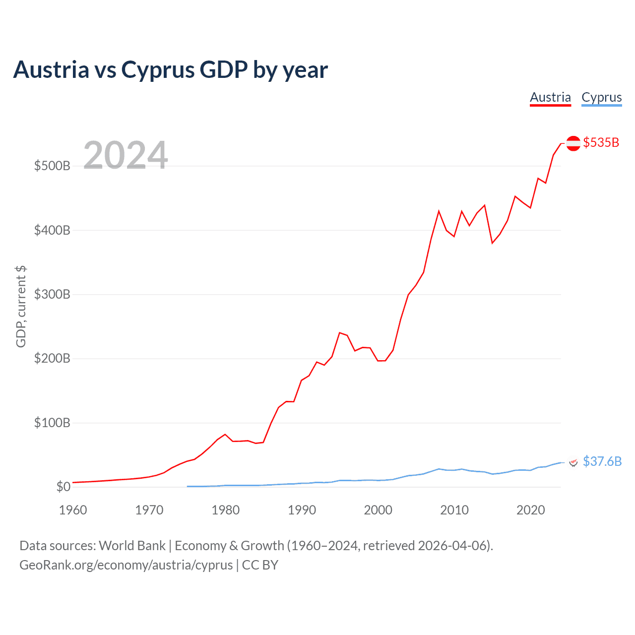 Austria vs Cyprus GDP by year