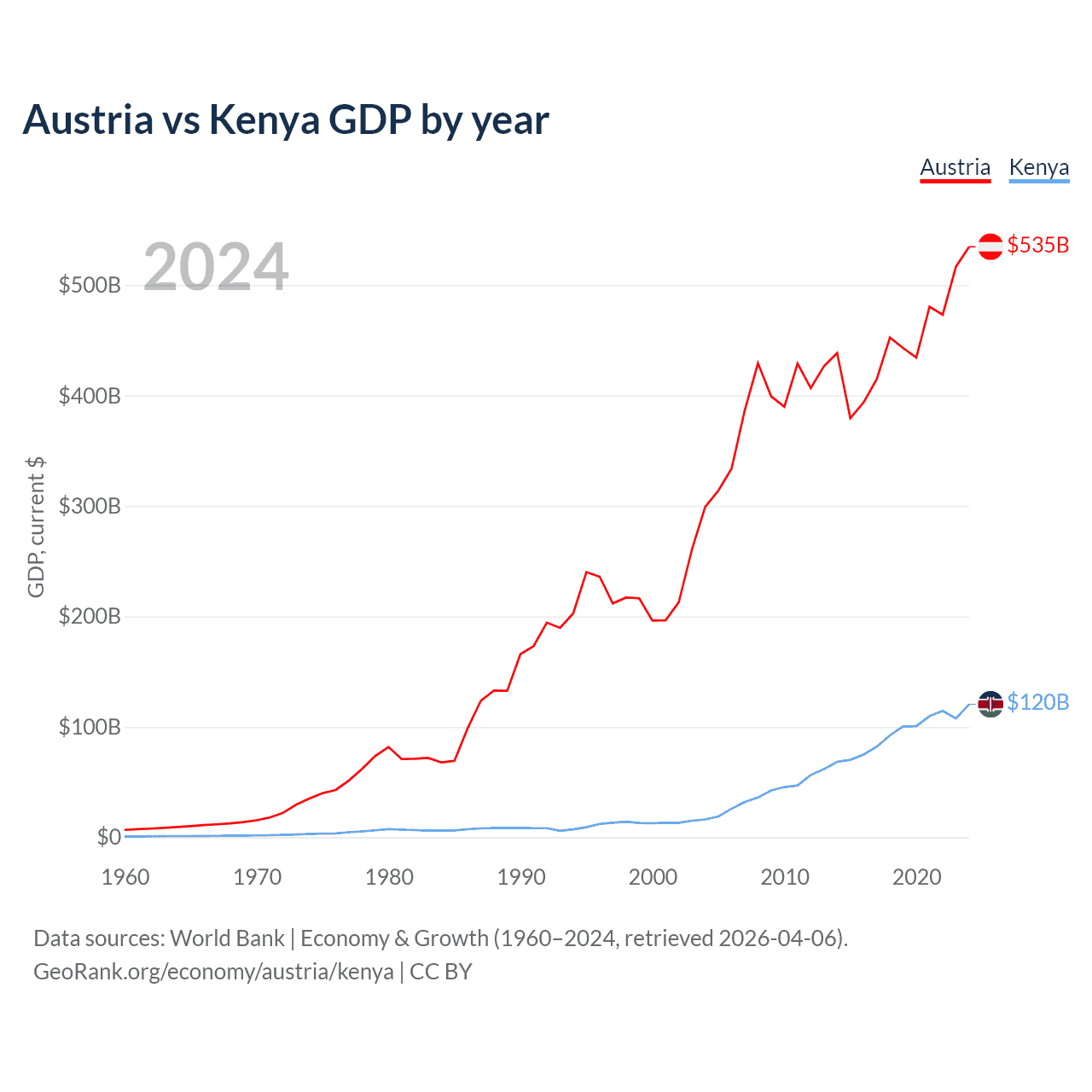 Austria vs Kenya GDP by year