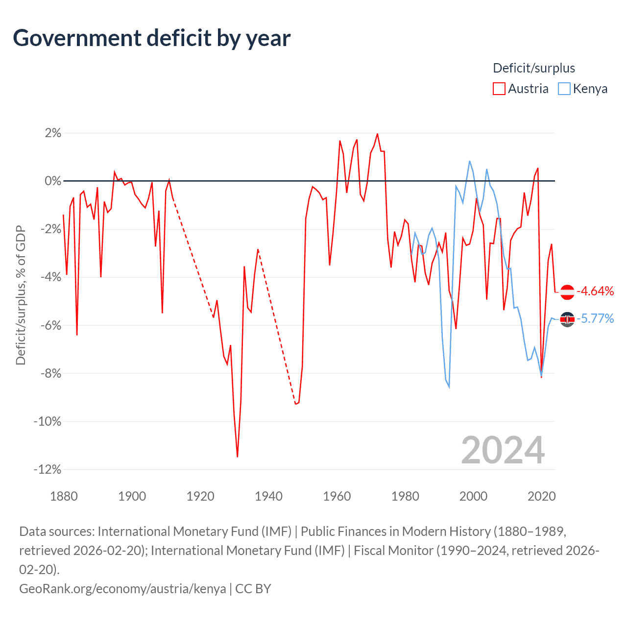 - International Monetary Fund (IMF) | Public Finances in Modern History (1880–1997, retrieved 2026-02-20)