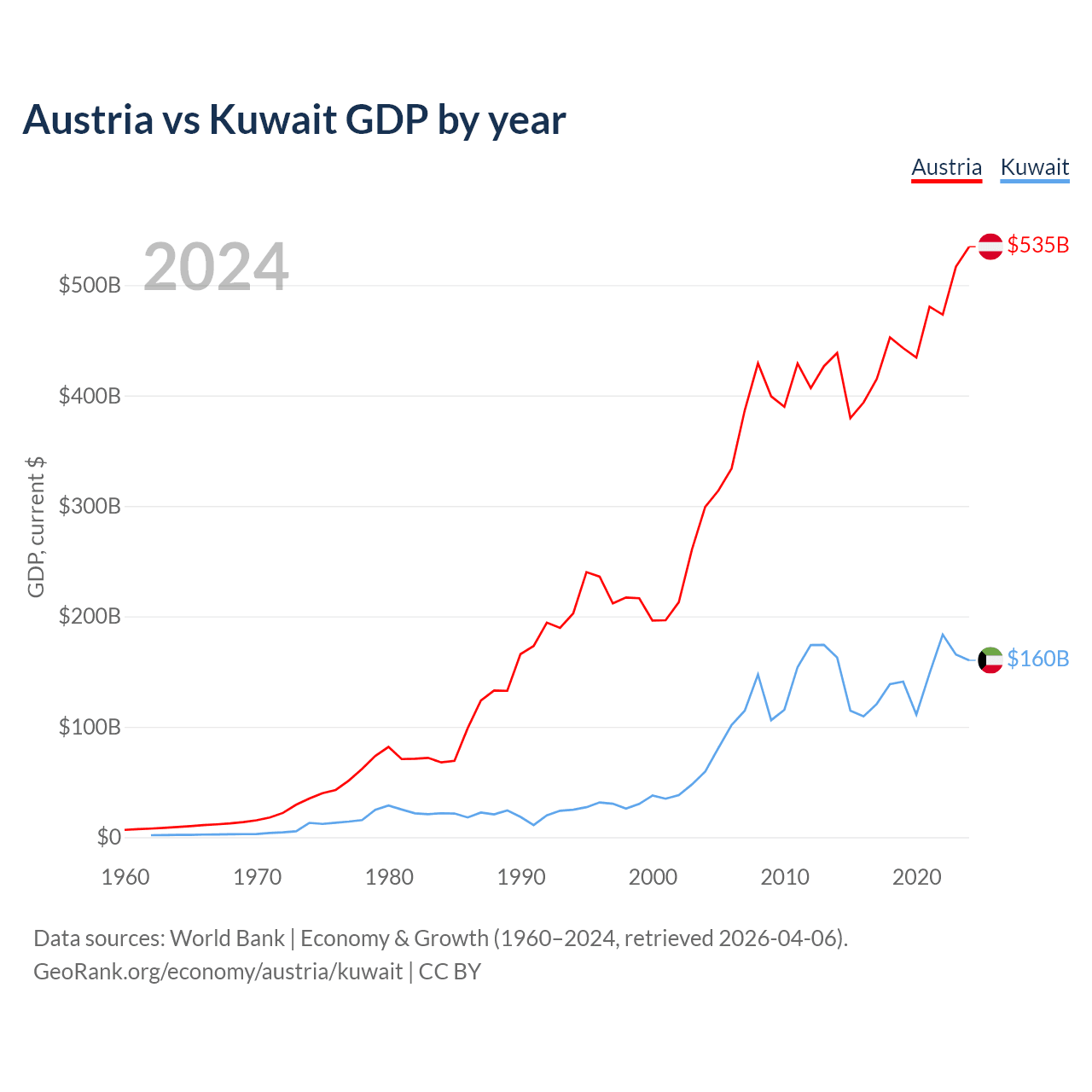Austria vs Kuwait GDP by year