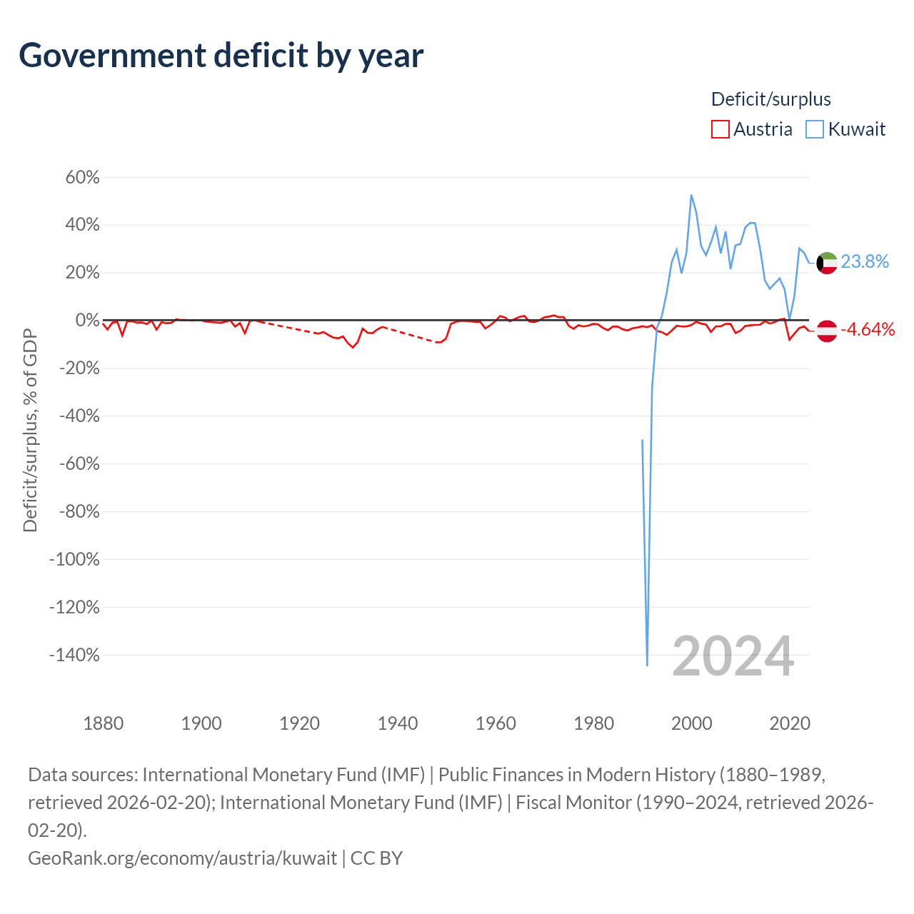 - International Monetary Fund (IMF) | Fiscal Monitor (1990–2024, retrieved 2026-02-20)