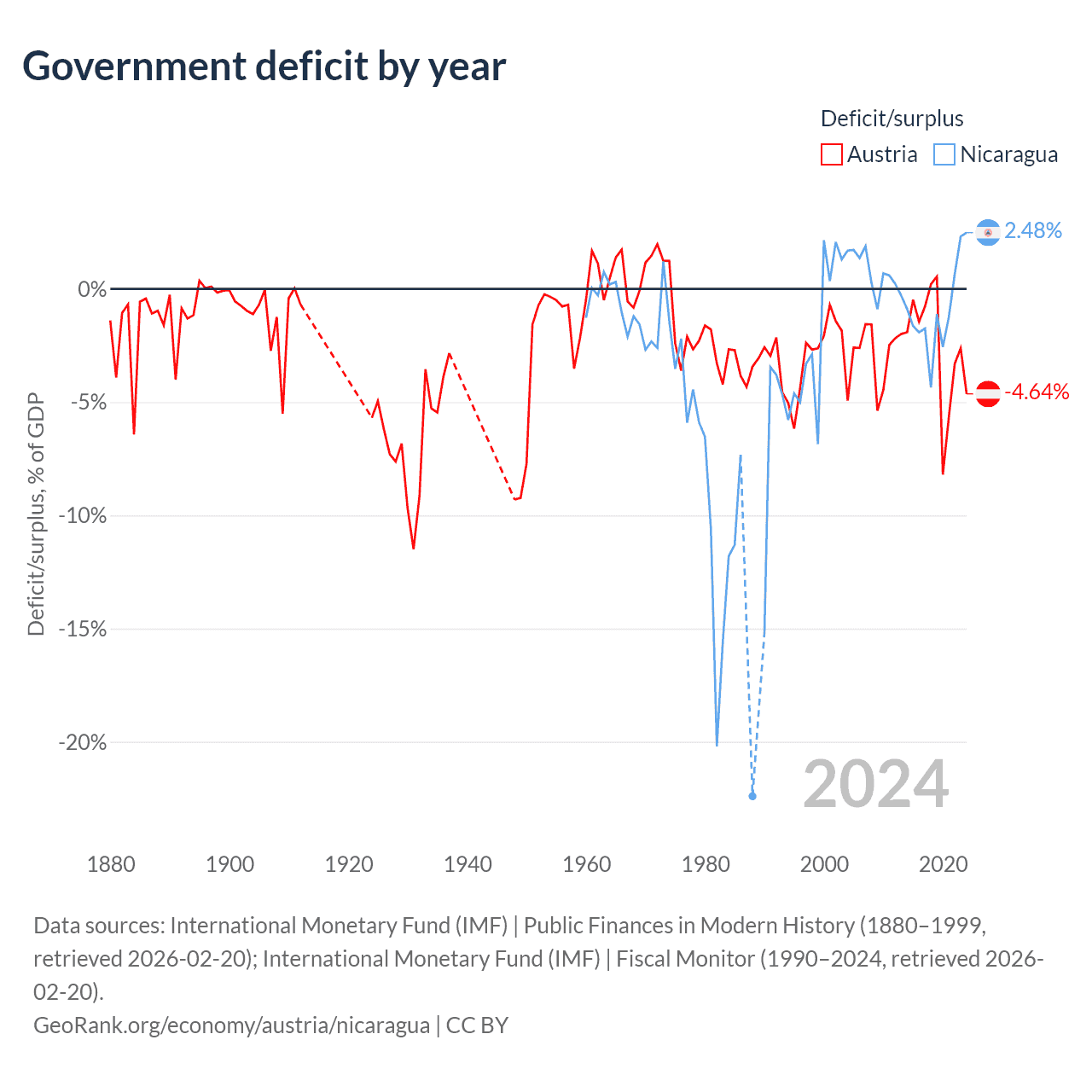- International Monetary Fund (IMF) | Public Finances in Modern History (1880–1999, retrieved 2026-02-20)