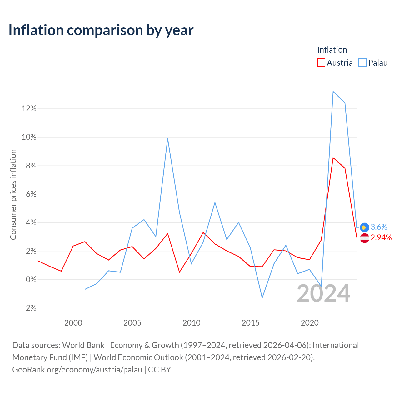 Austria vs Palau GDP by year