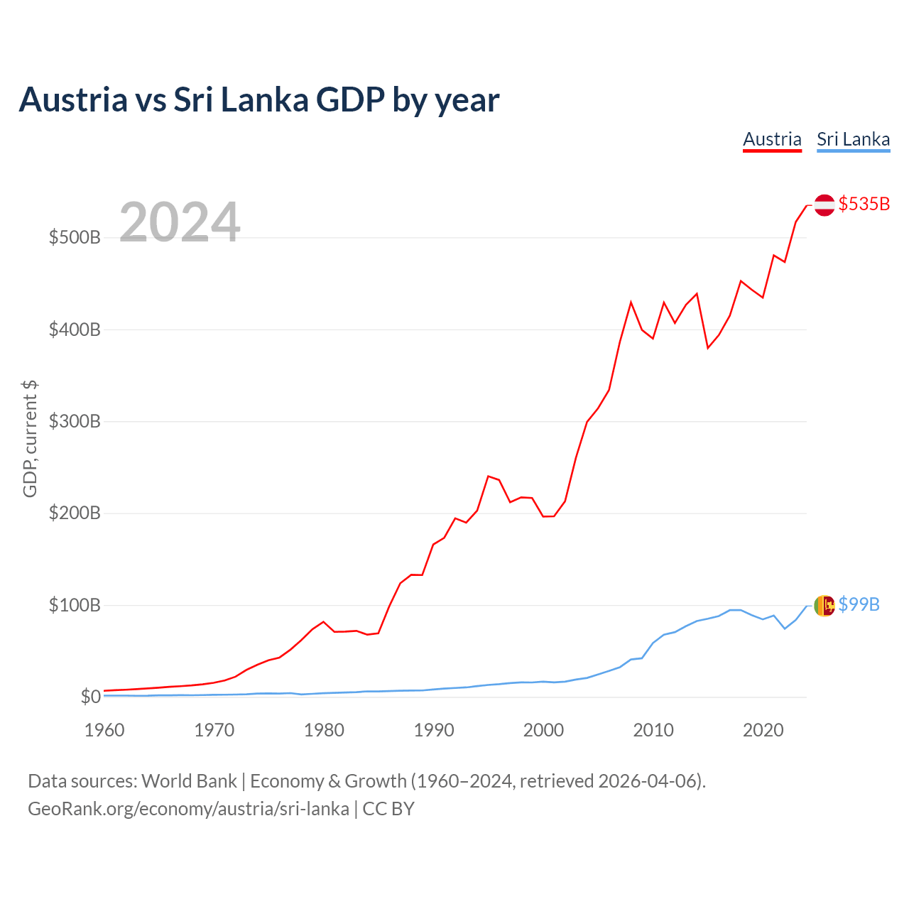 Austria vs Sri Lanka GDP by year