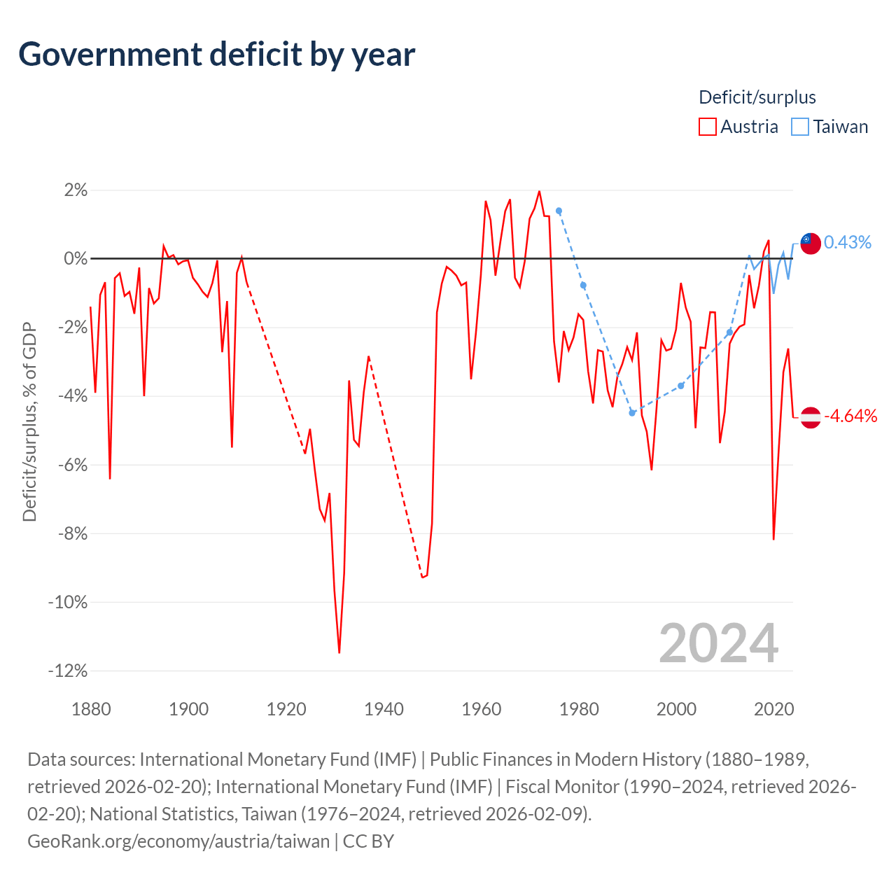- International Monetary Fund (IMF) | Public Finances in Modern History (1880–1989, retrieved 2026-02-20)