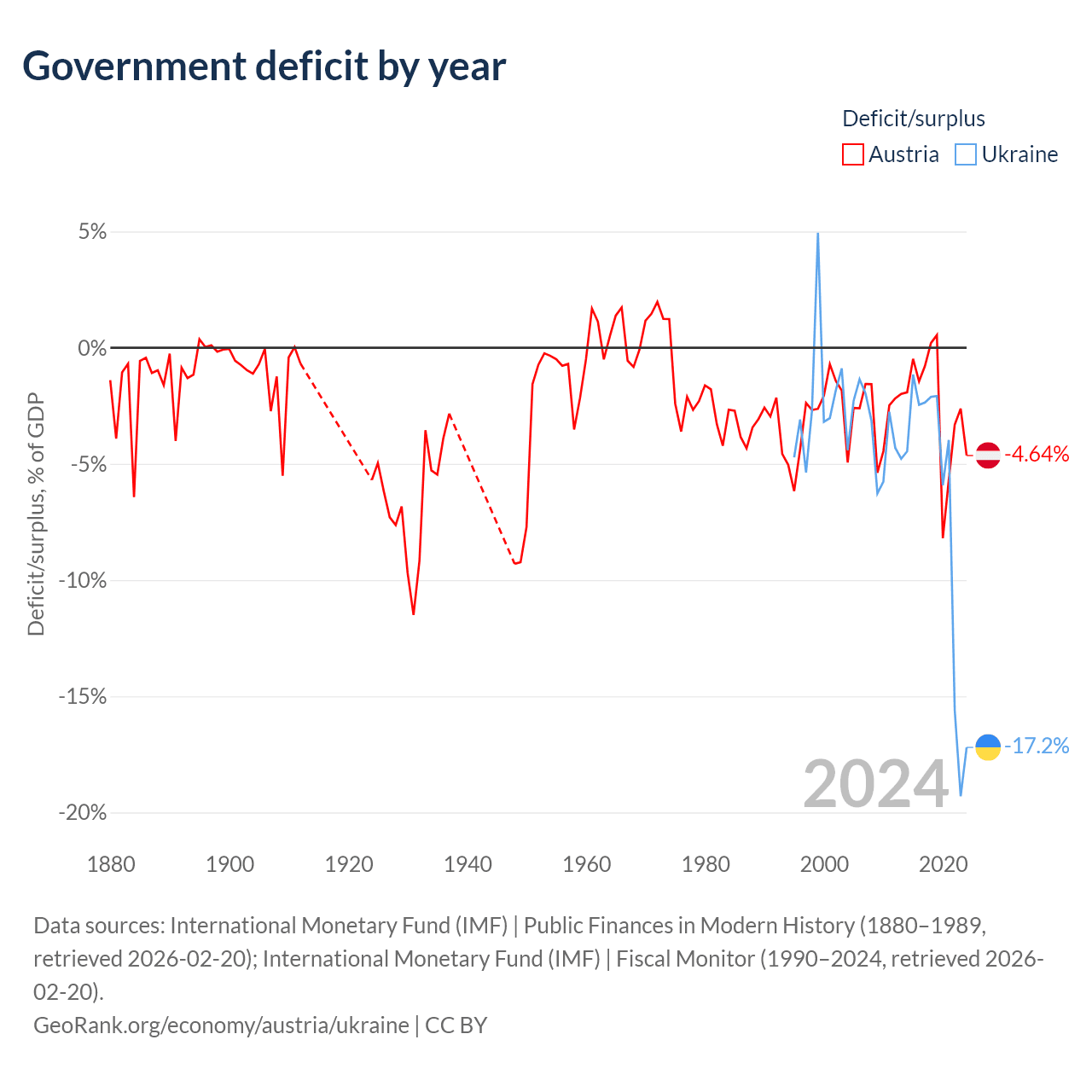 - International Monetary Fund (IMF) | Public Finances in Modern History (1880–1996, retrieved 2026-02-20)