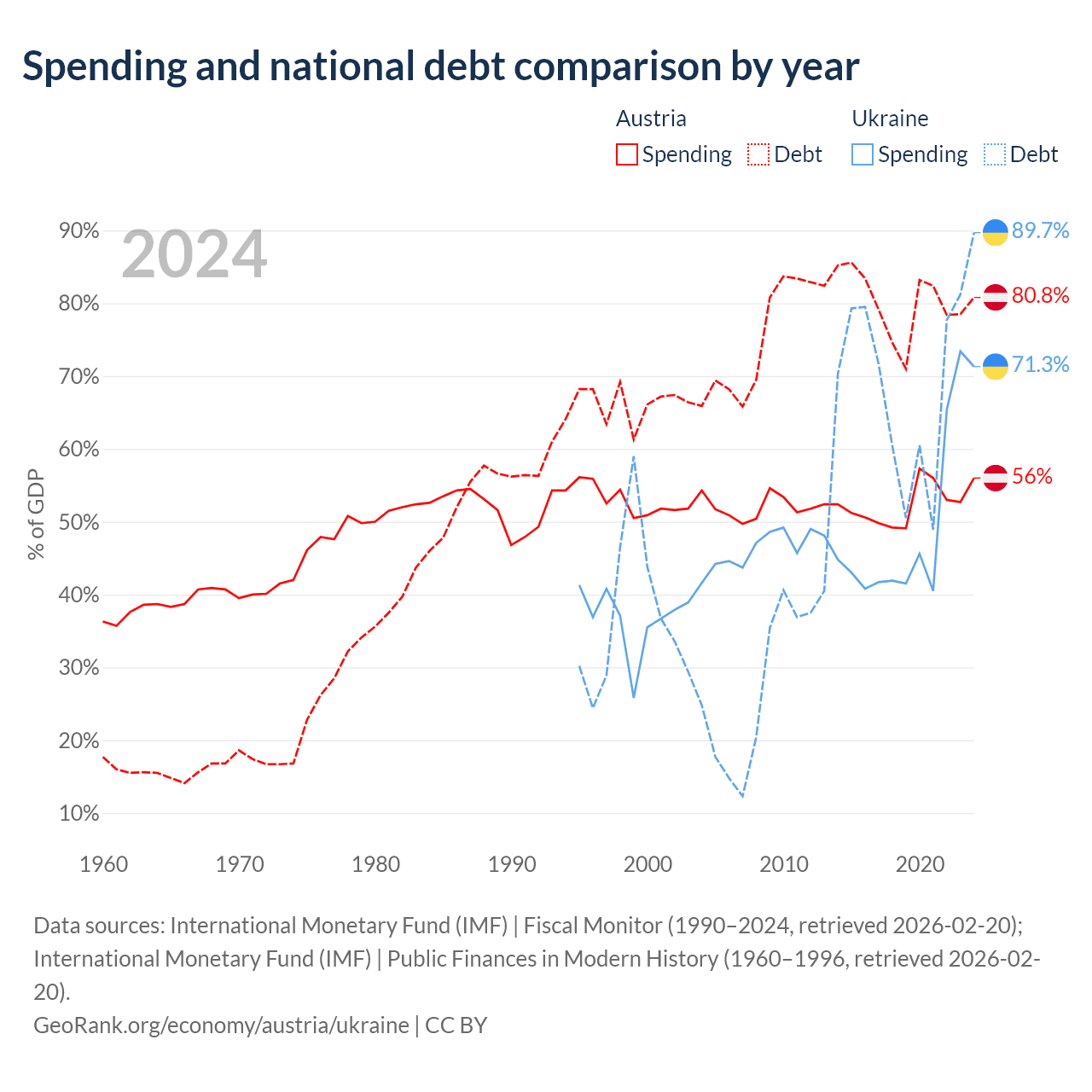 Austria has $432B in government debt (80.8% of GDP), compared to $171B (89.7% of GDP) in Ukraine.