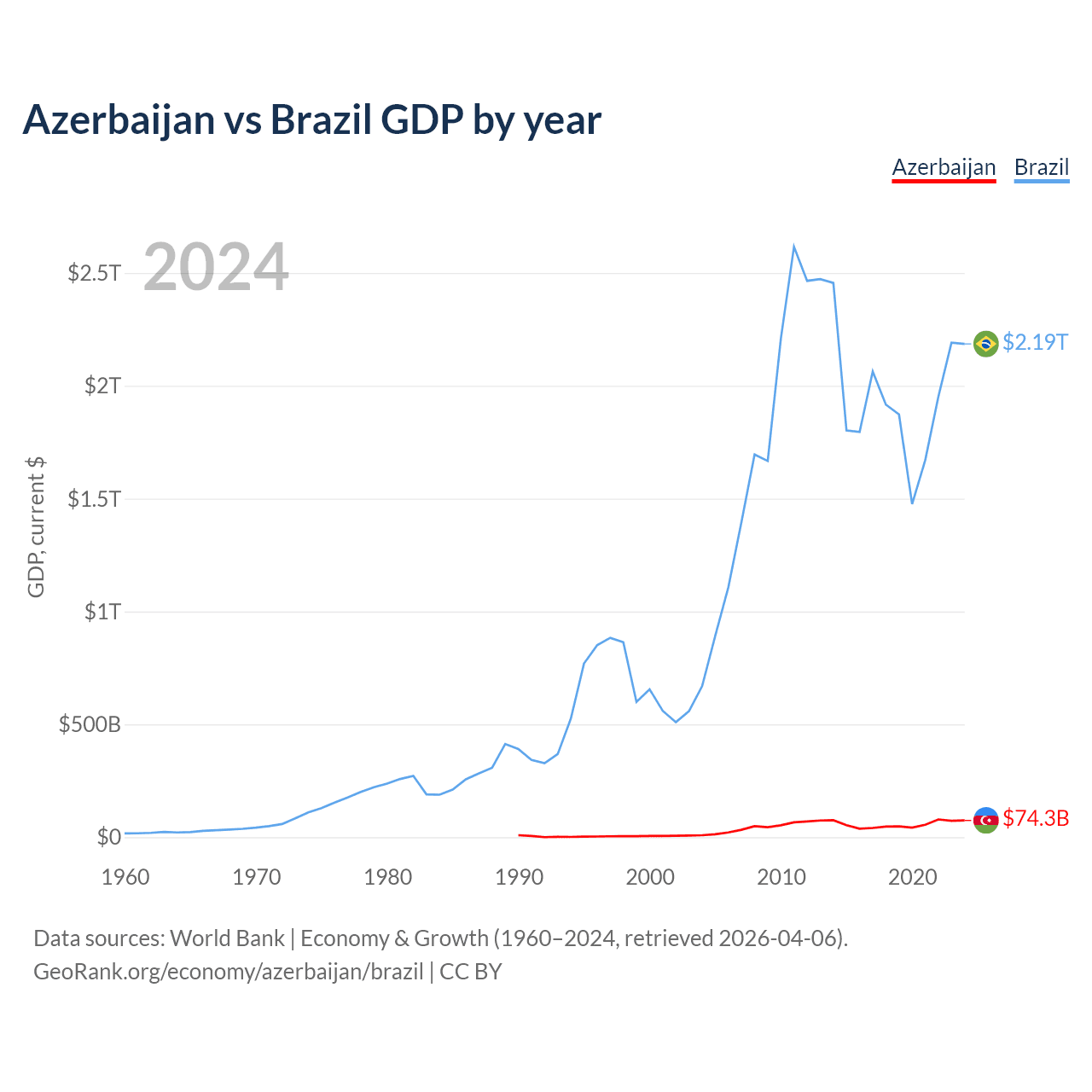Azerbaijan vs Brazil GDP by year