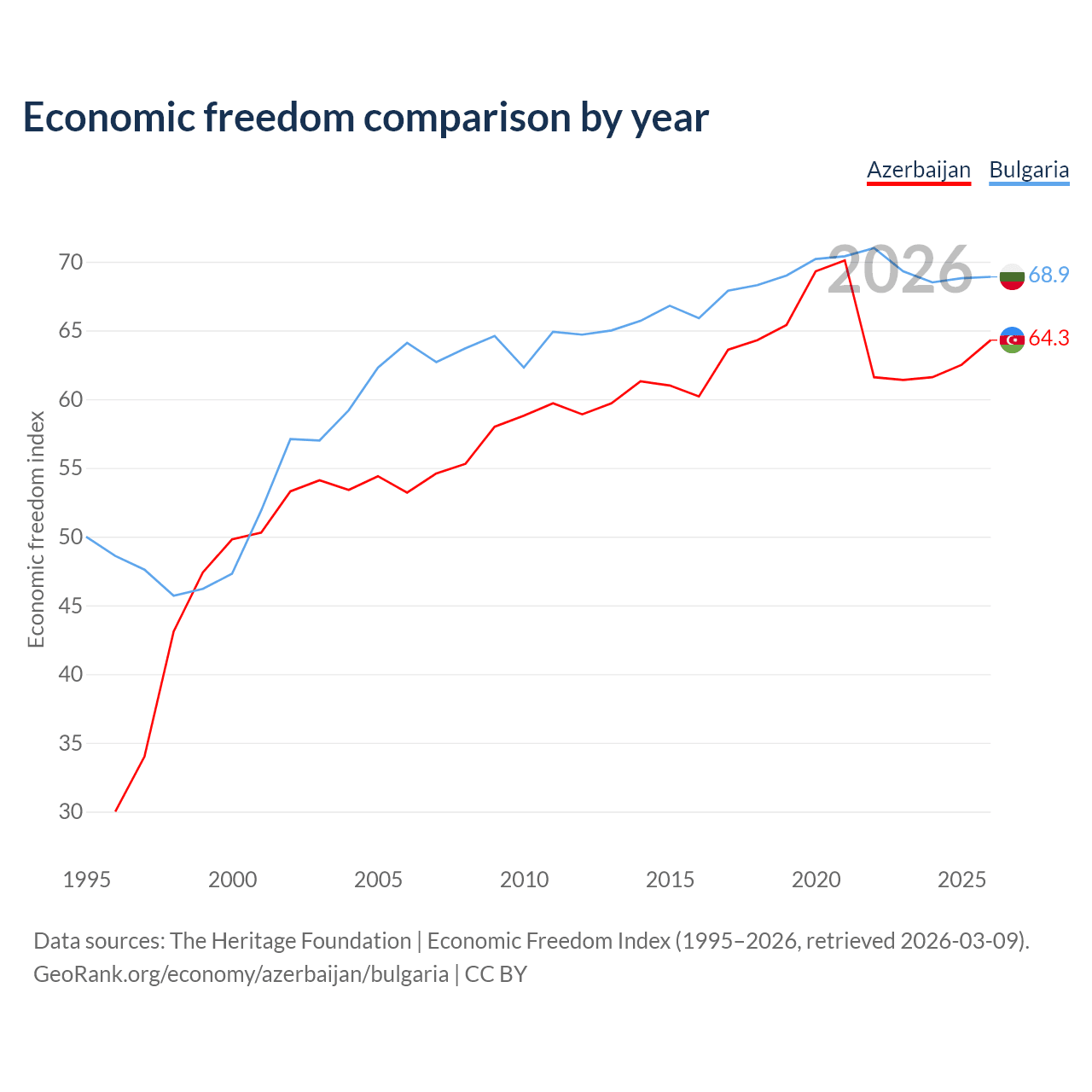 Data sources: The Heritage Foundation | Economic Freedom Index (1995–2026, retrieved 2026-03-09).