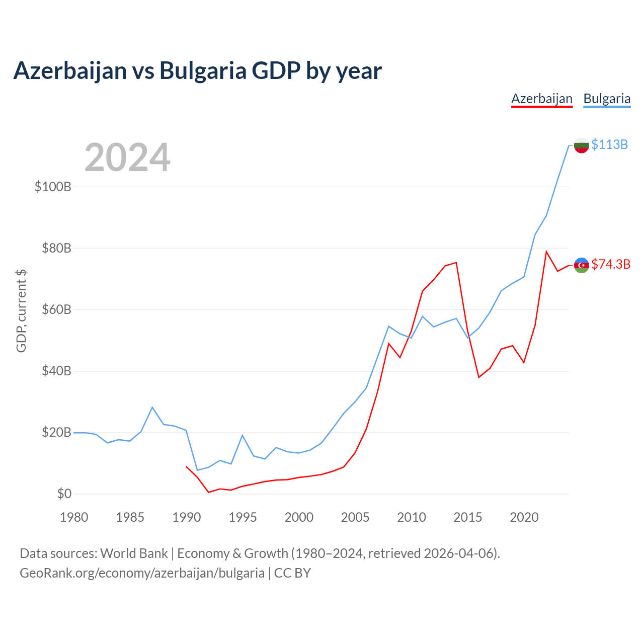 Azerbaijan vs Bulgaria GDP by year