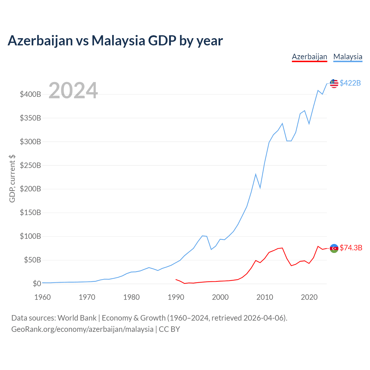 Azerbaijan vs Malaysia GDP by year