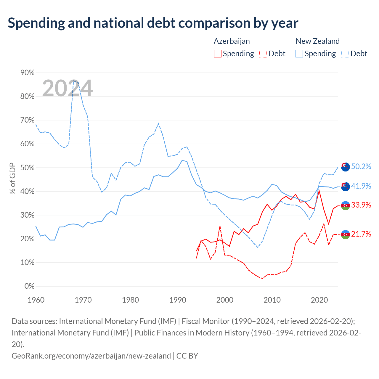 Azerbaijan has $16.1B in government debt (21.7% of GDP), compared to $131B (50.2% of GDP) in New Zealand.