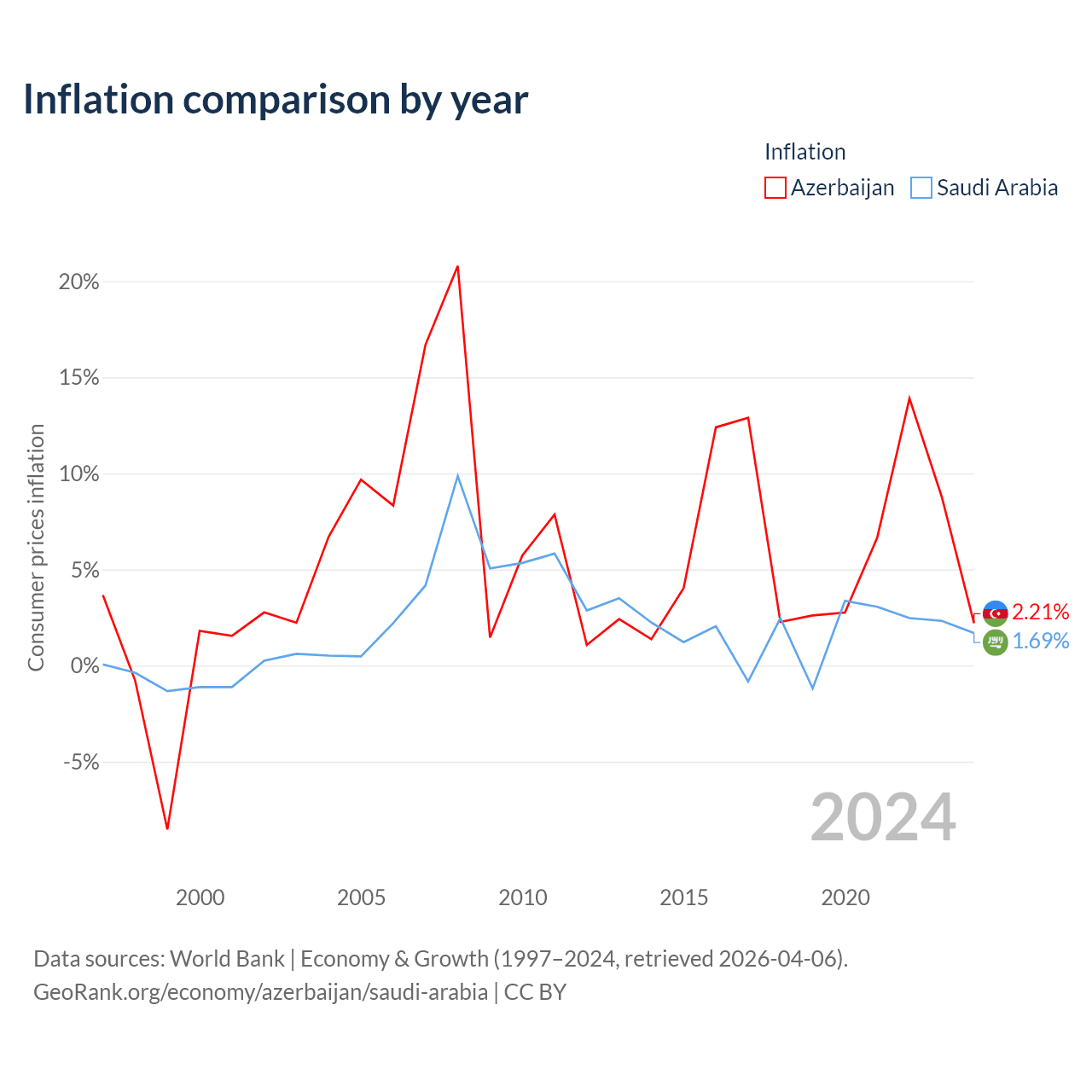 Data sources: World Bank | Economy & Growth (1960–2024, retrieved 2026-04-06).