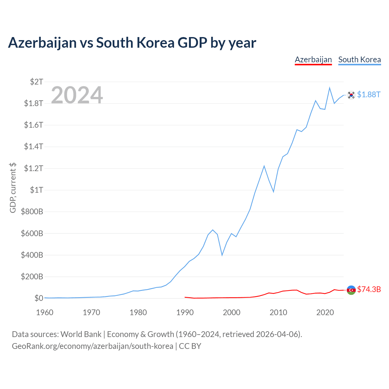 Azerbaijan vs South Korea GDP by year