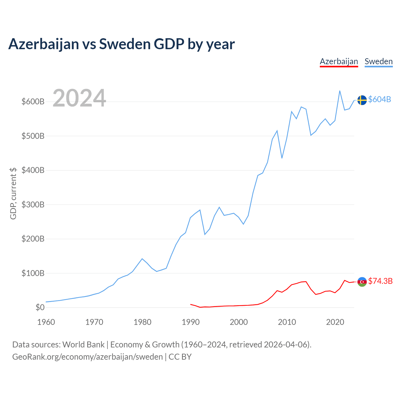 Azerbaijan vs Sweden GDP by year