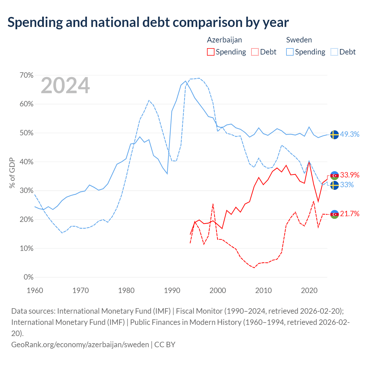 Azerbaijan has $16.1B in government debt (21.7% of GDP), compared to $199B (33% of GDP) in Sweden.