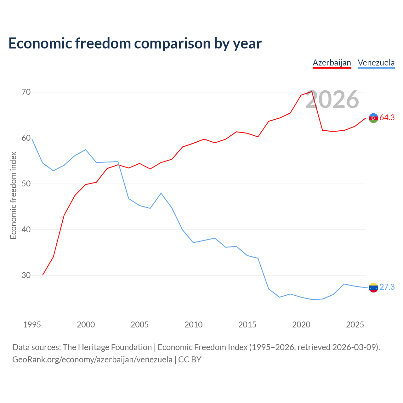 Data sources: The Heritage Foundation | Economic Freedom Index (1995–2026, retrieved 2026-03-09).