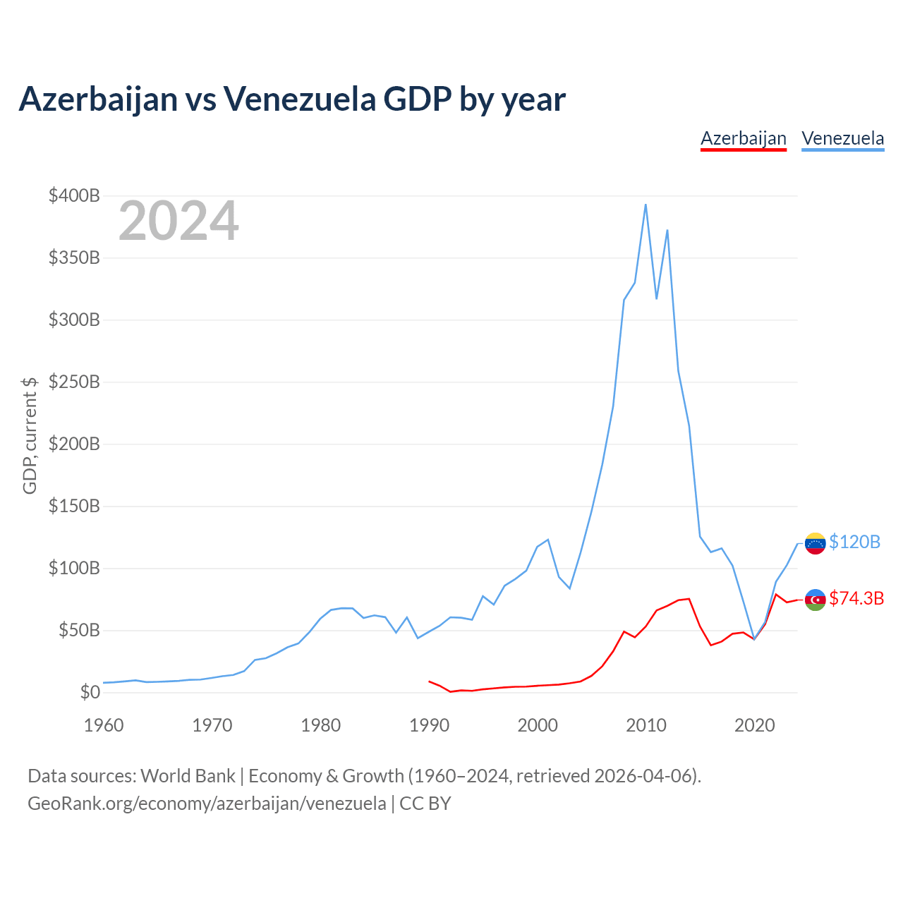 Azerbaijan vs Venezuela GDP by year