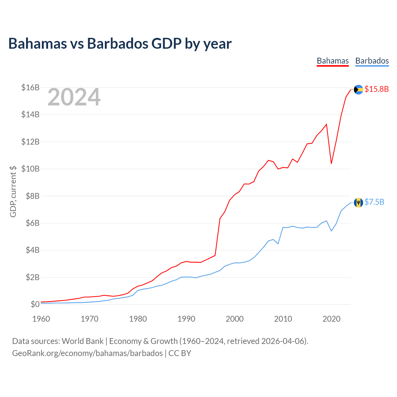 Bahamas vs Barbados GDP by year