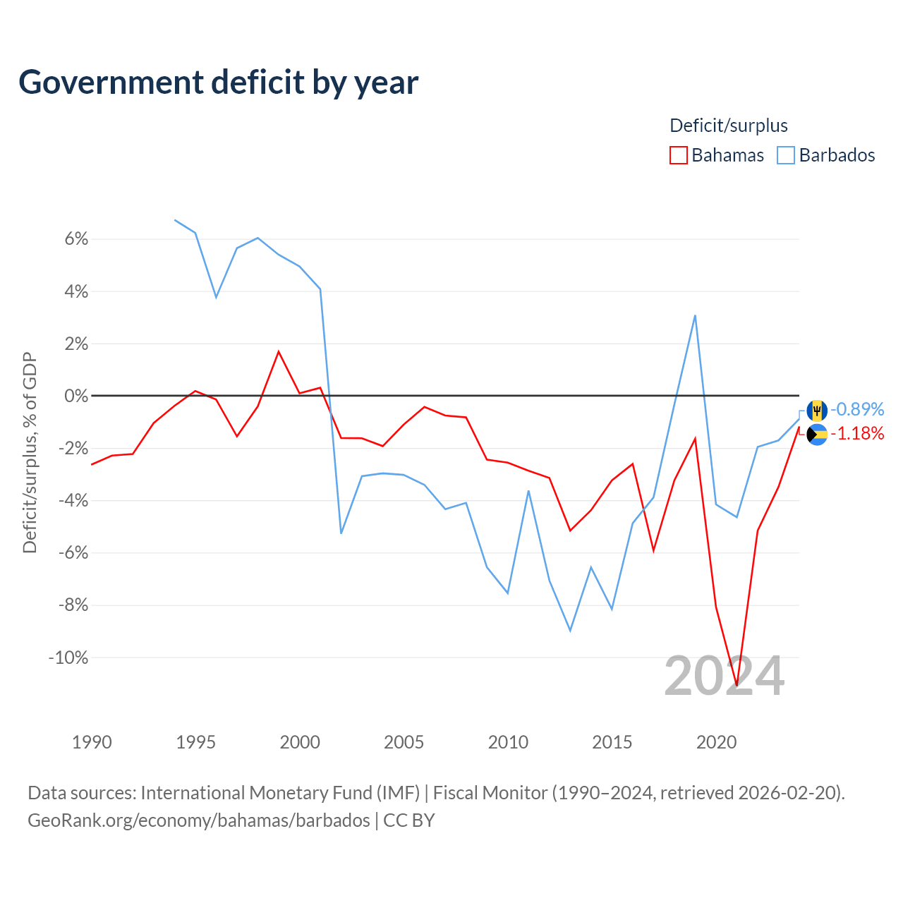 - International Monetary Fund (IMF) | Fiscal Monitor (1990–2024, retrieved 2026-02-20)