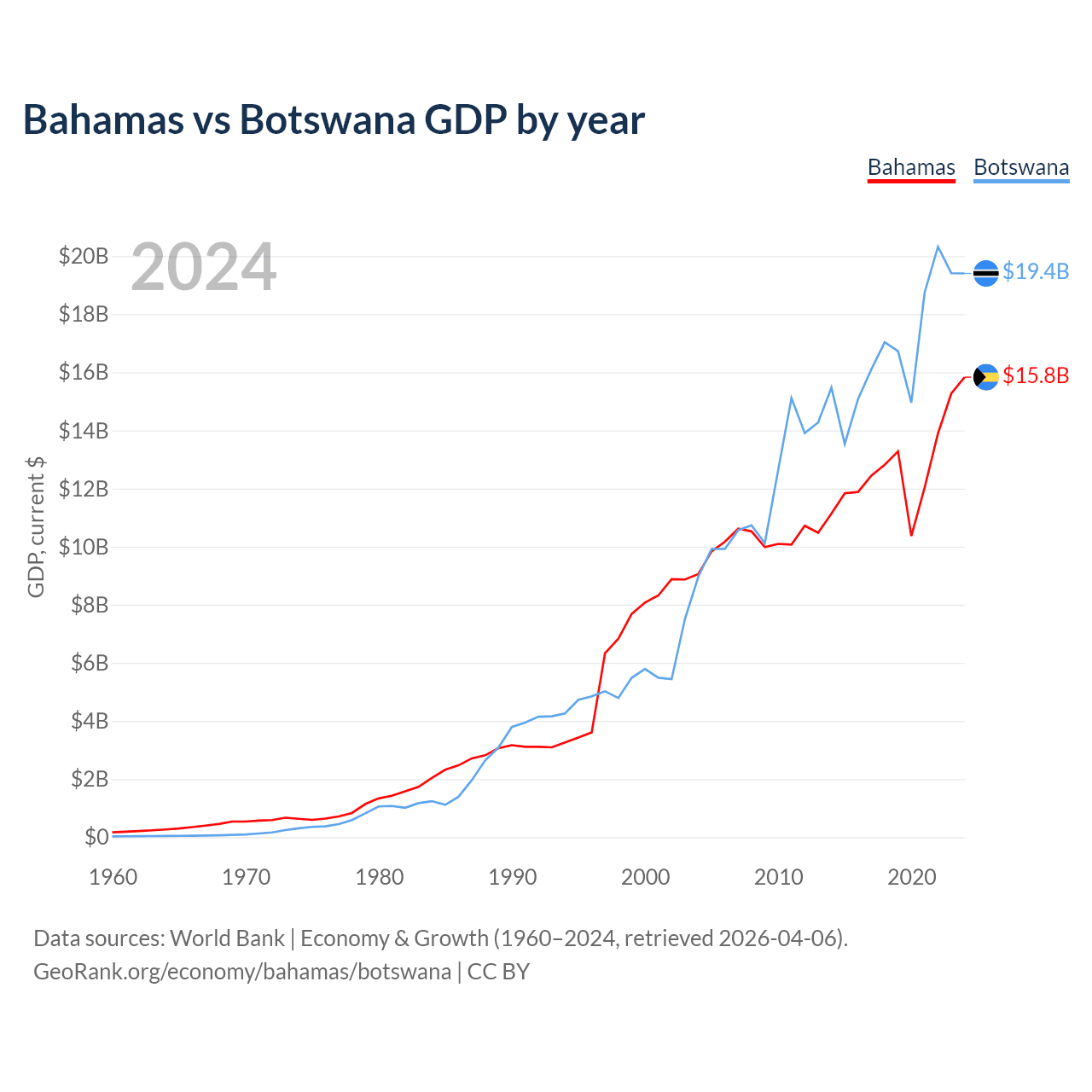 Bahamas vs Botswana GDP by year