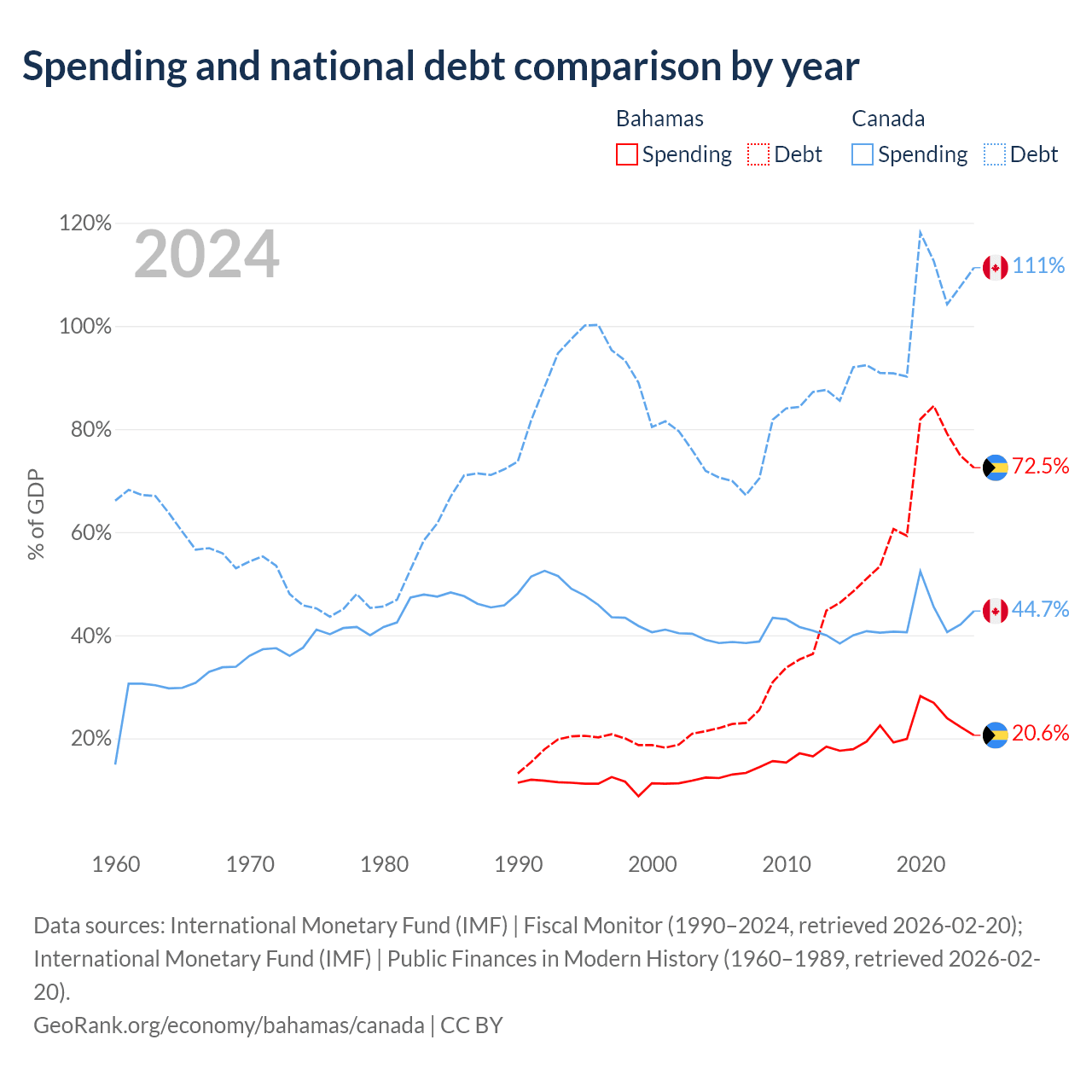 The Bahamas has $11.5B in government debt (72.5% of GDP), compared to $2.5T (111.3% of GDP) in Canada.