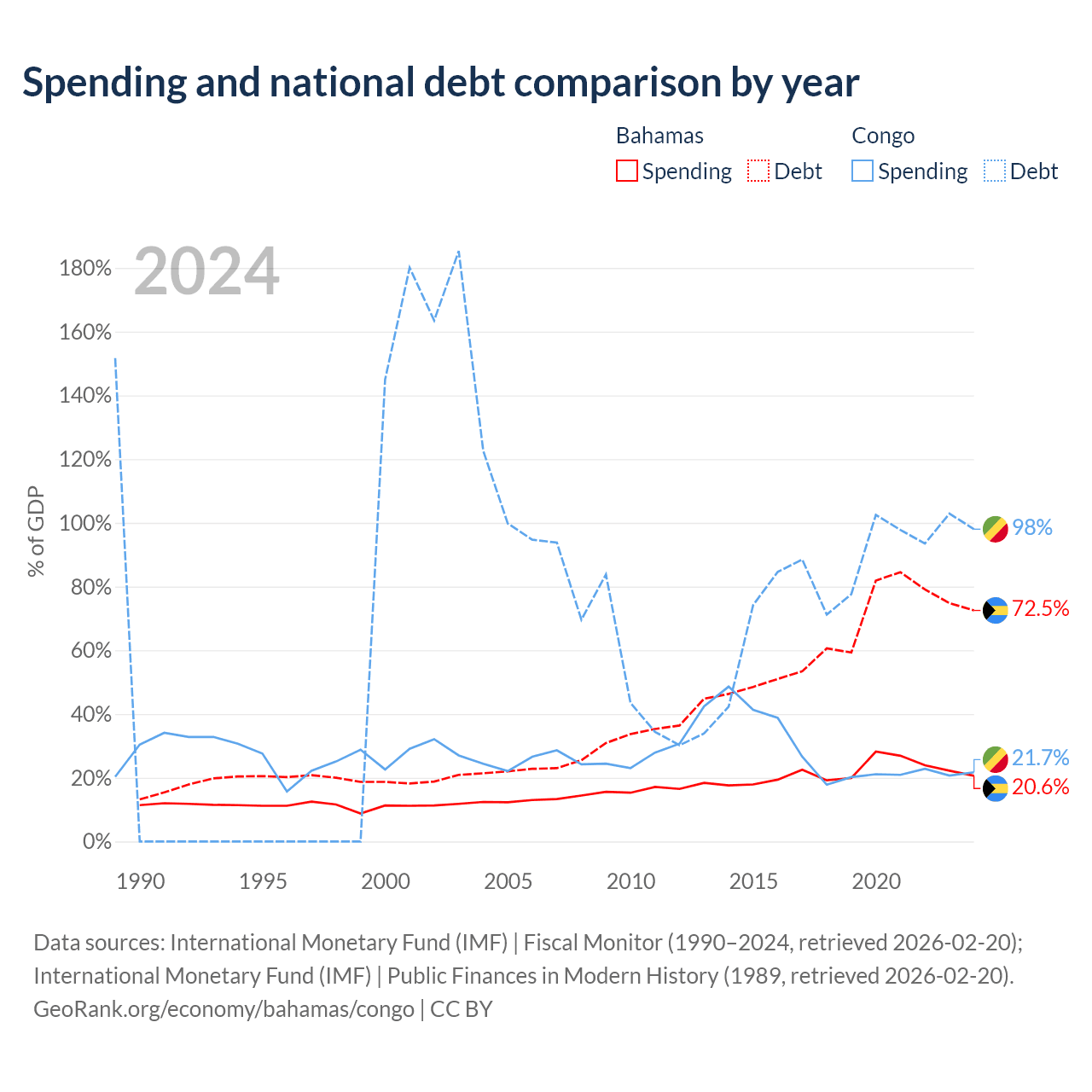 The Bahamas has $11.5B in government debt (72.5% of GDP), compared to $15.4B (98% of GDP) in the Congo.