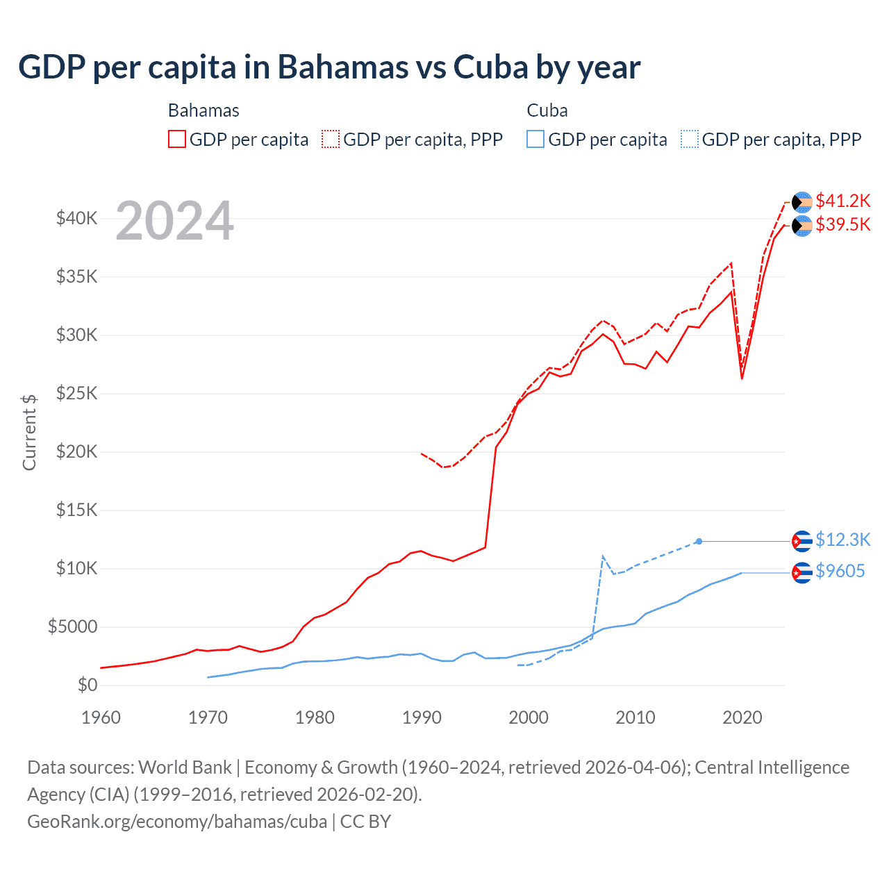 Bahamas vs Cuba GDP by year