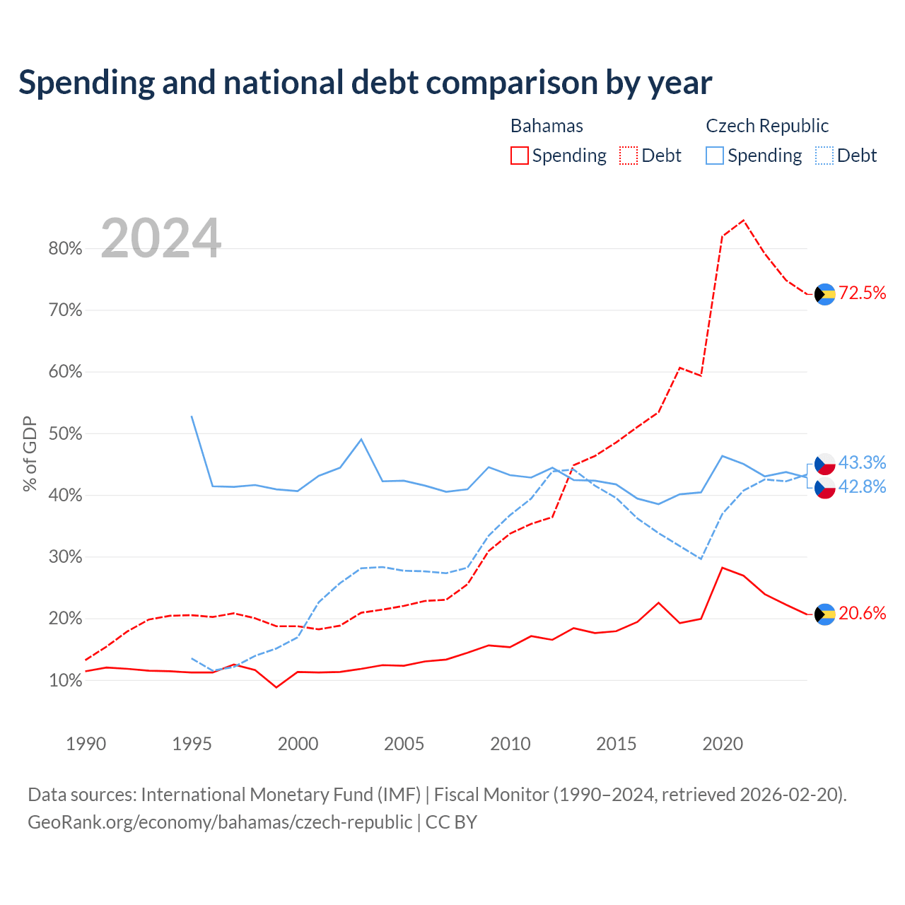 The Bahamas has $11.5B in government debt (72.5% of GDP), compared to $150B (43.3% of GDP) in the Czech Republic.