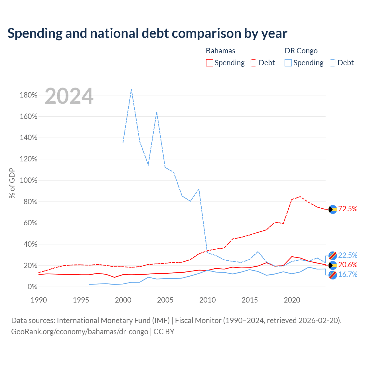 The Bahamas has $11.5B in government debt (72.5% of GDP), compared to $16B (22.5% of GDP) in the DR Congo.