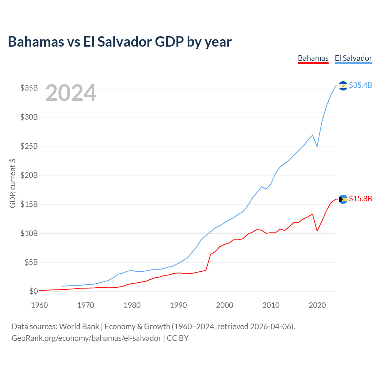 Bahamas vs El Salvador GDP by year