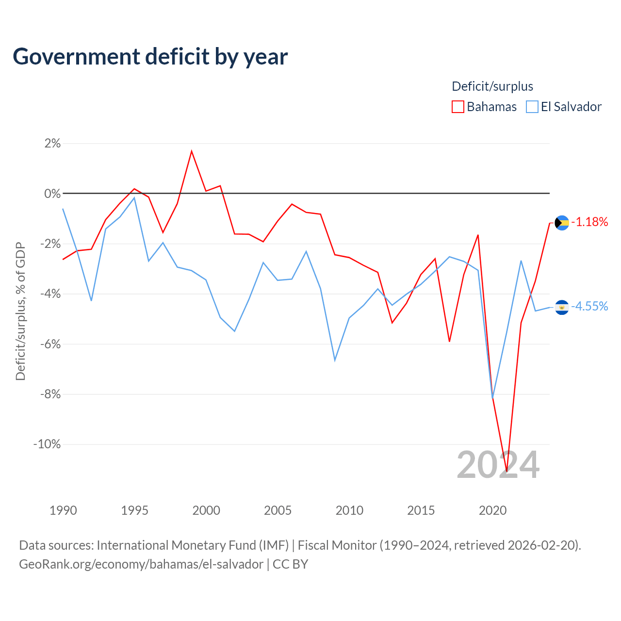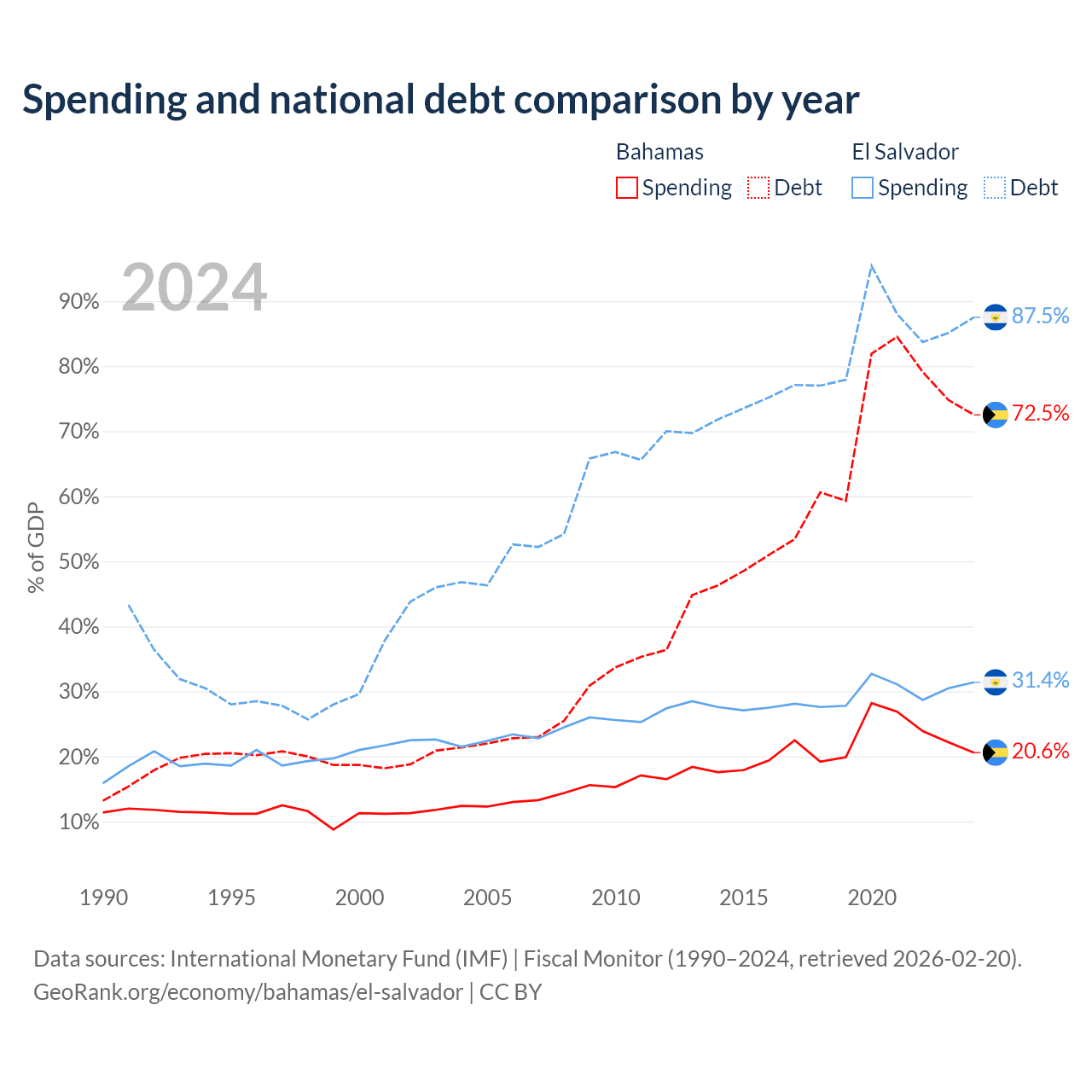 - International Monetary Fund (IMF) | Fiscal Monitor (1990–2024, retrieved 2026-02-20)