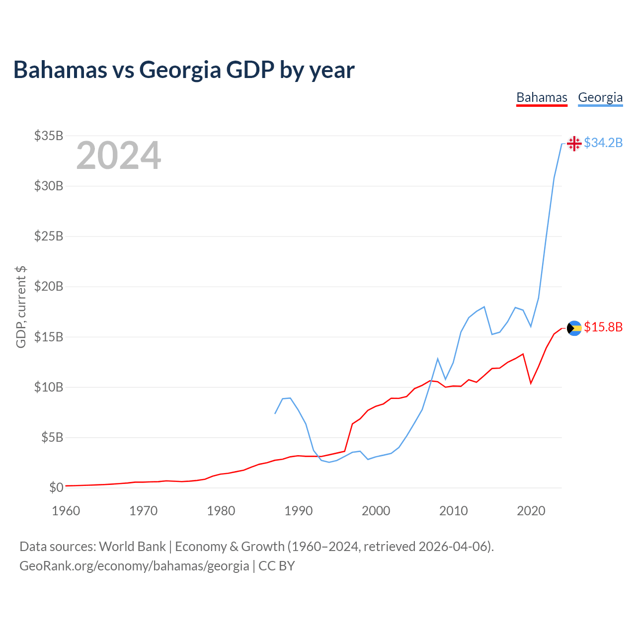 Bahamas vs Georgia GDP by year