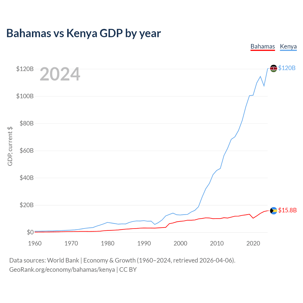 Bahamas vs Kenya GDP by year