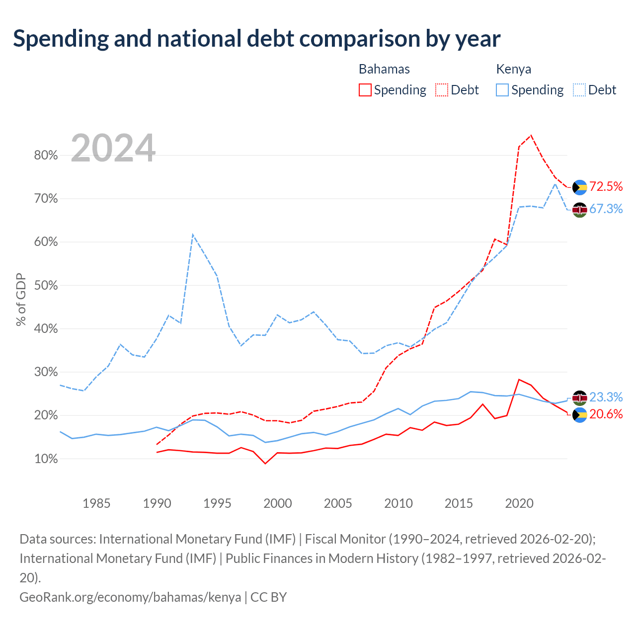 The Bahamas has $11.5B in government debt (72.5% of GDP), compared to $81B (67.3% of GDP) in Kenya.