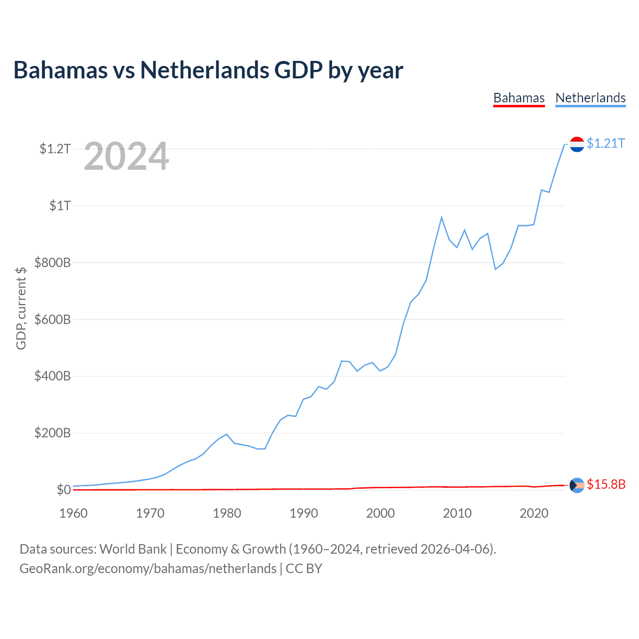 Bahamas vs Netherlands GDP by year