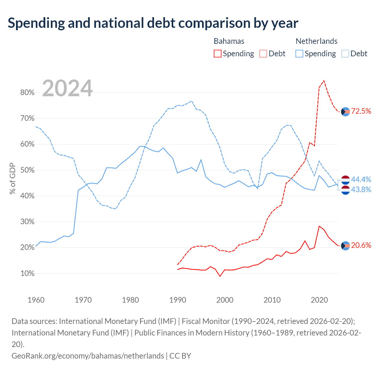 The Bahamas has $11.5B in government debt (72.5% of GDP), compared to $532B (43.8% of GDP) in the Netherlands.