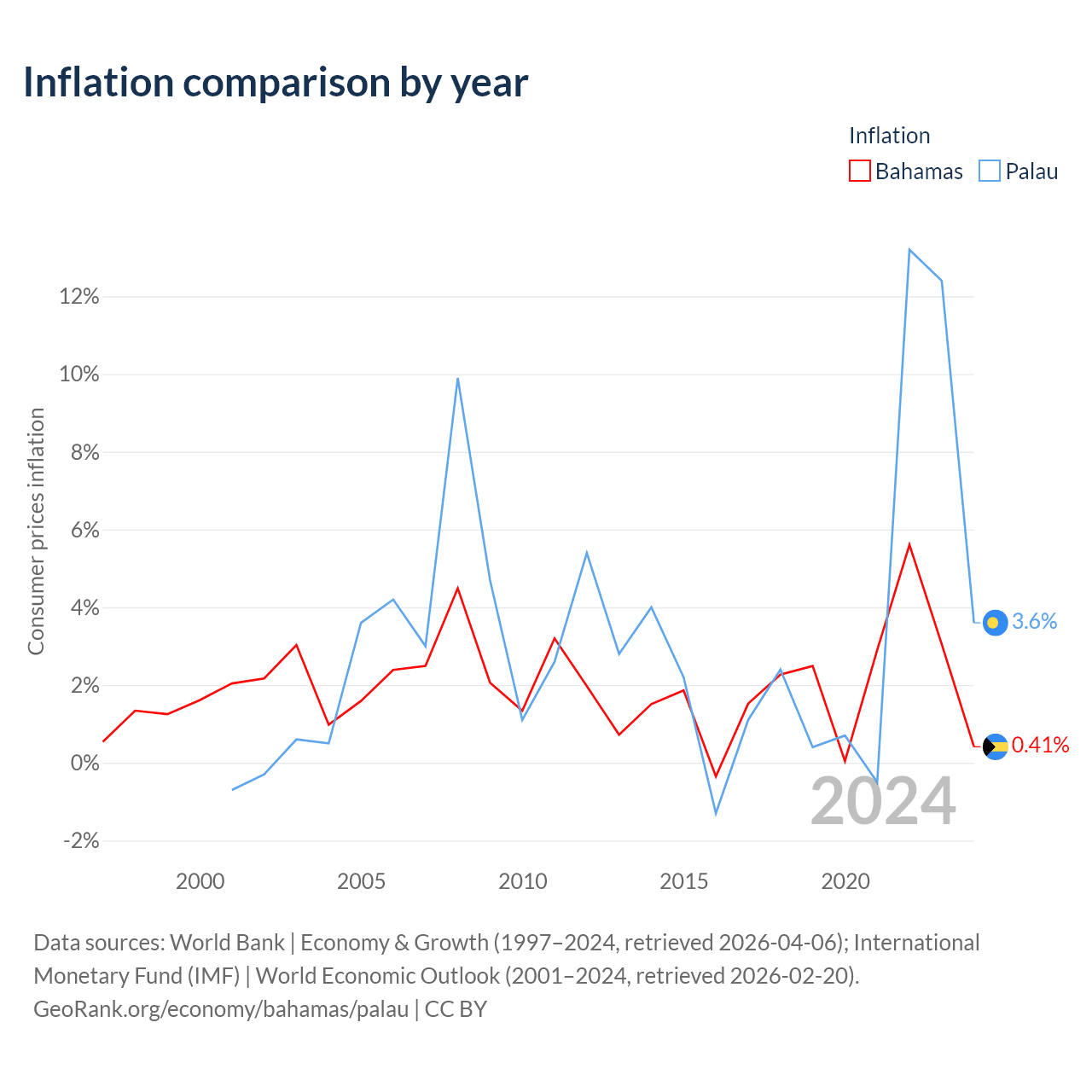 Bahamas vs Palau GDP by year