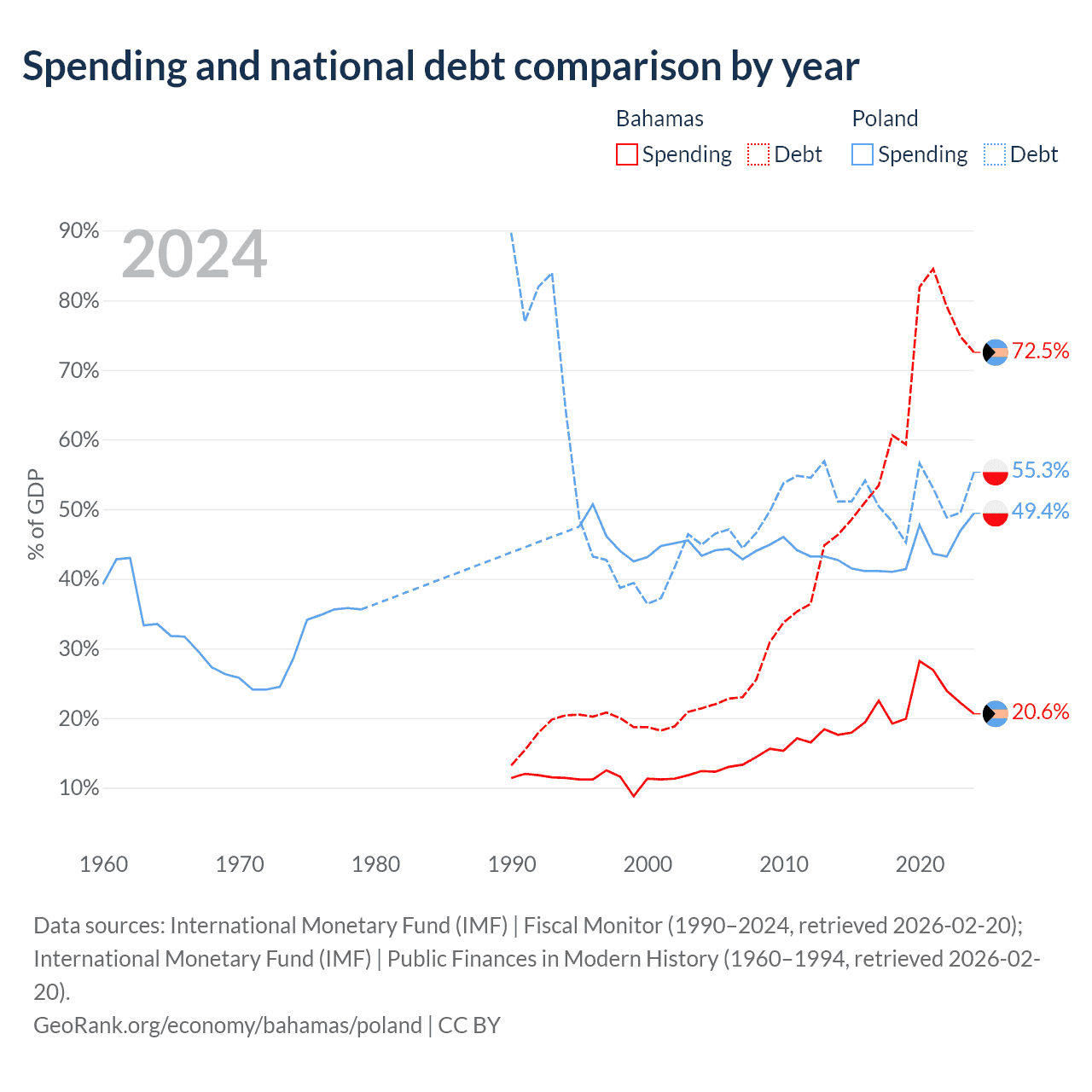The Bahamas has $11.5B in government debt (72.5% of GDP), compared to $507B (55.3% of GDP) in Poland.